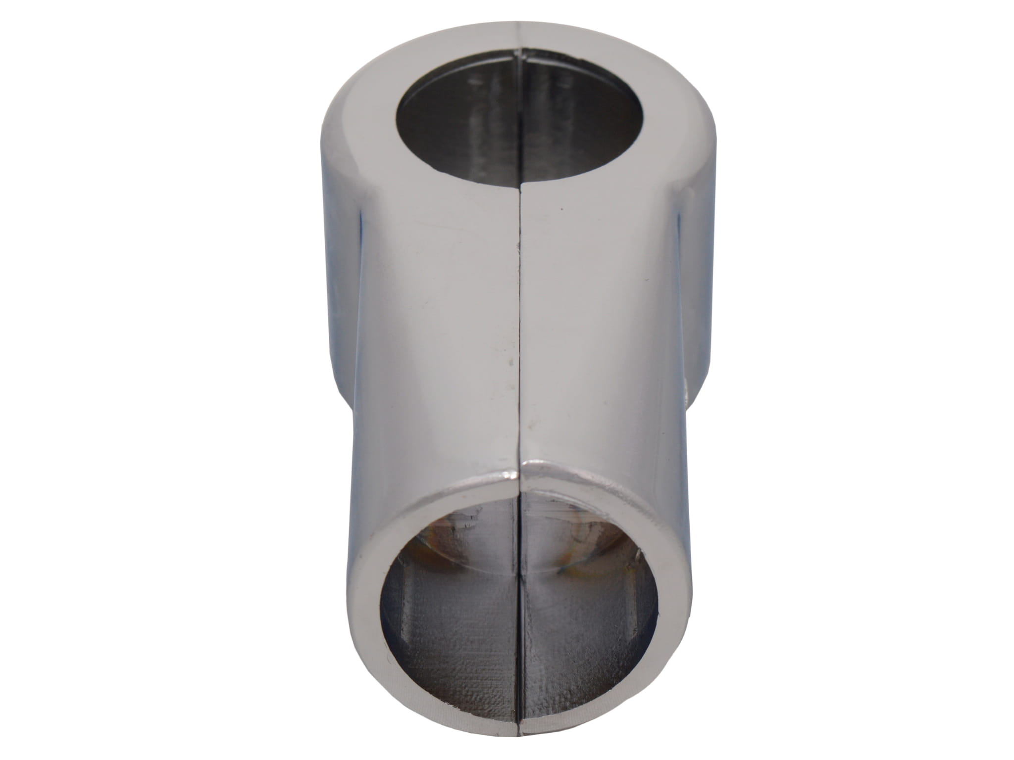 Small 3 ways clamp joins two pieces tube together at right angles.