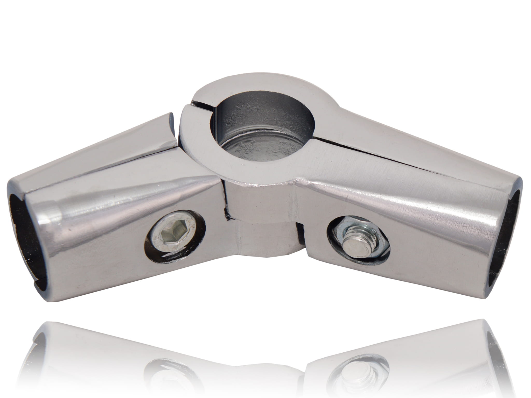 Two-sided, angular hinged joint with lock is designed for tube with diameter of 32 mm. This product is created for balustrade system.