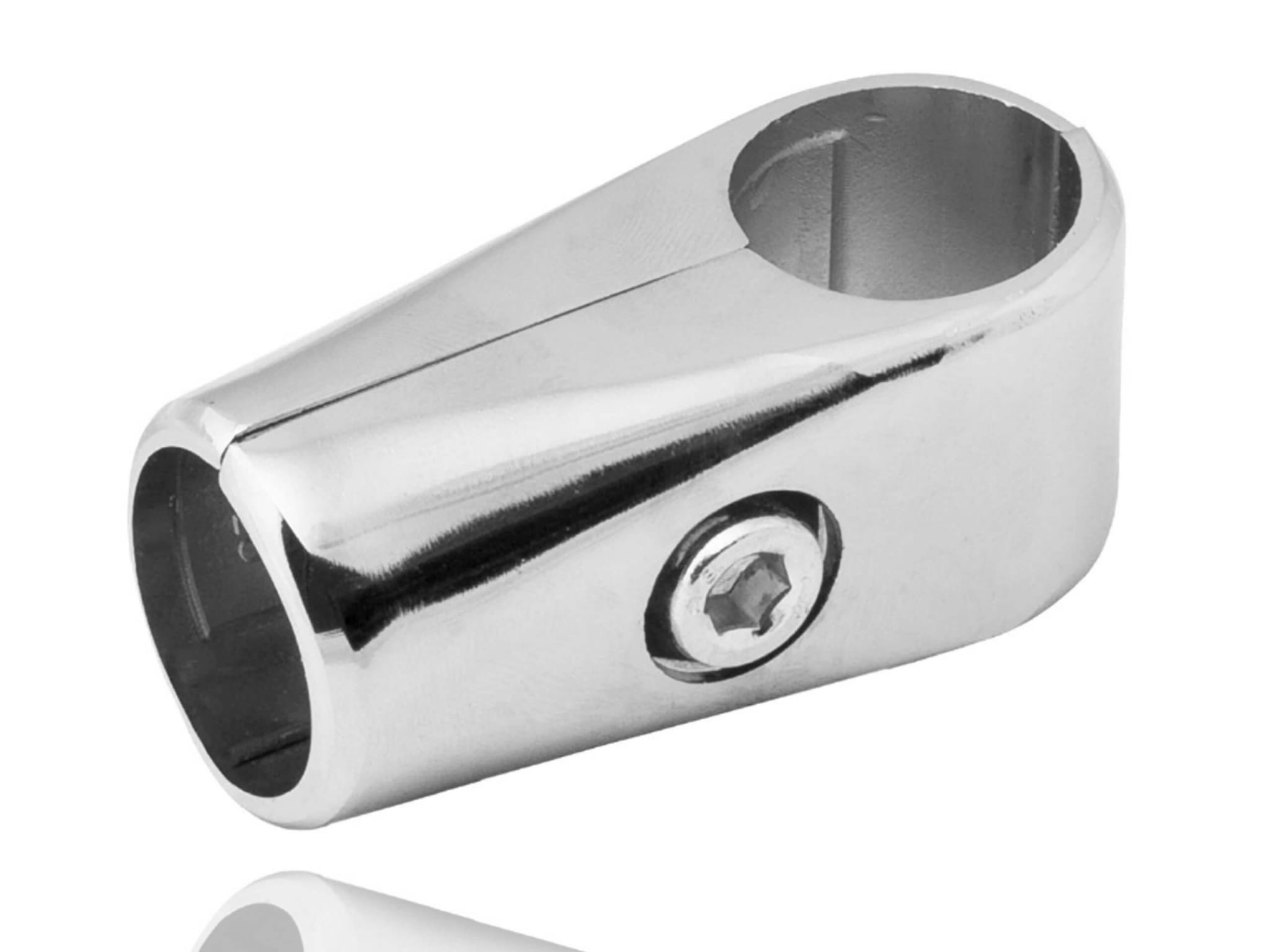 Small 3 ways clamp joins two pieces tube together at right angles.