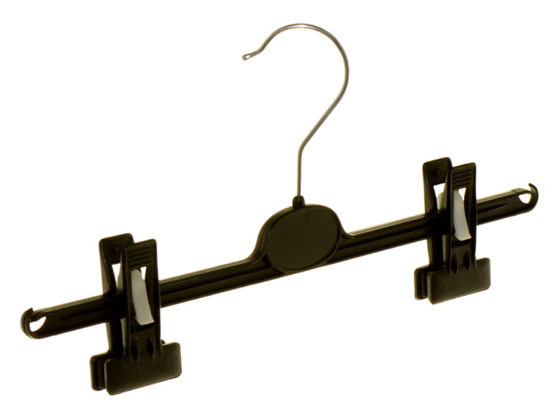Hanger is designed mostly for skirts display but also for trousers. With clips sliding along arms - adjustment of separation between clips is from 15 cm to 32 cm. Hanger has under the clips the profiled, rubber strips, for which clothes are not damaged and does not fall from hanger. Special cuts at the end of hanger allows additional hang of clothes!