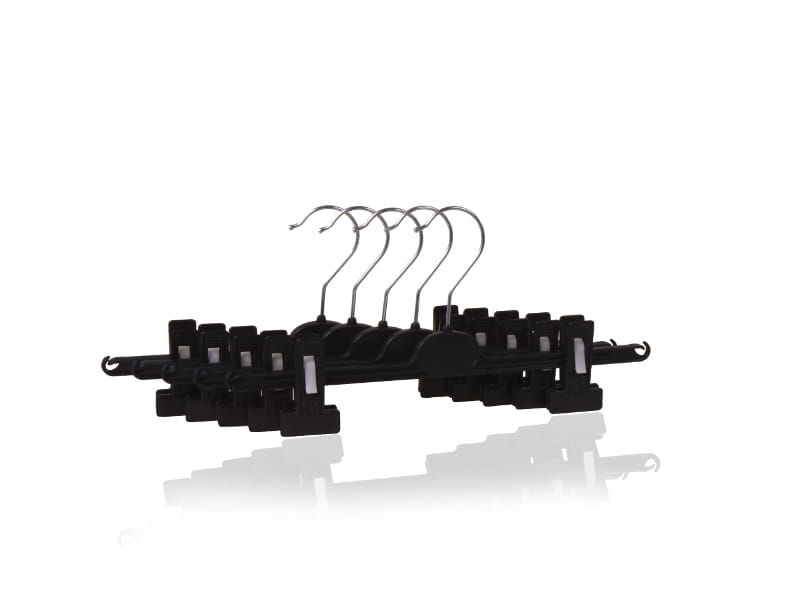 Hanger is designed mostly for skirts display but also for trousers. With clips sliding along arms - adjustment of separation between clips is from 15 cm to 32 cm. Hanger has under the clips the profiled, rubber strips, for which clothes are not damaged and does not fall from hanger. Special cuts at the end of hanger allows additional hang of clothes!