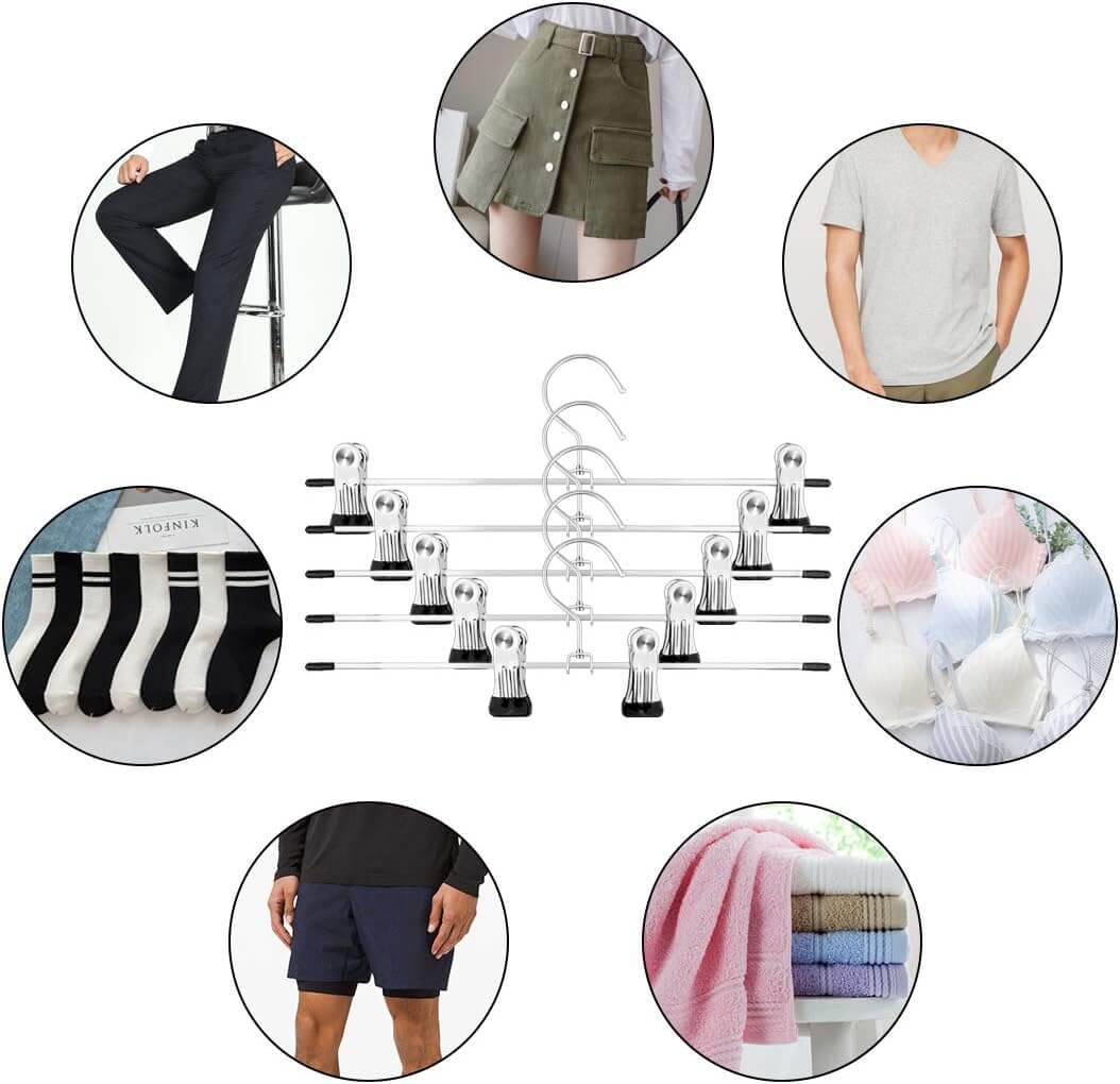 Hanger is designed mostly for skirts display but also for trousers. With clips sliding along arms - adjustment of separation between clips is from 15 cm to 32 cm. Hanger has under the clips the profiled, rubber strips, for which clothes are not damaged and does not fall from hanger. Special cuts at the end of hanger allows additional hang of clothes!
