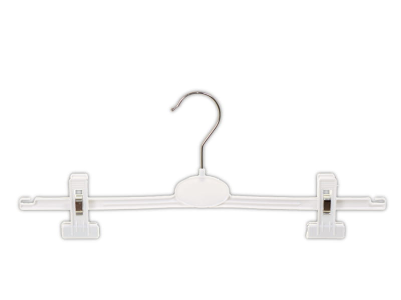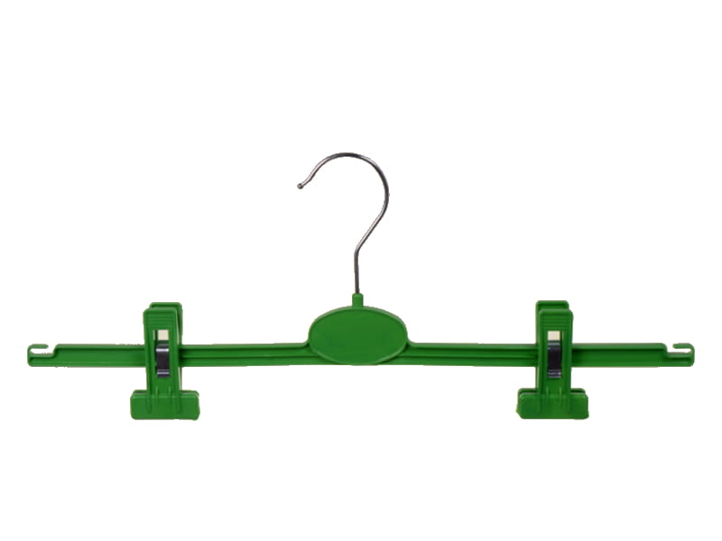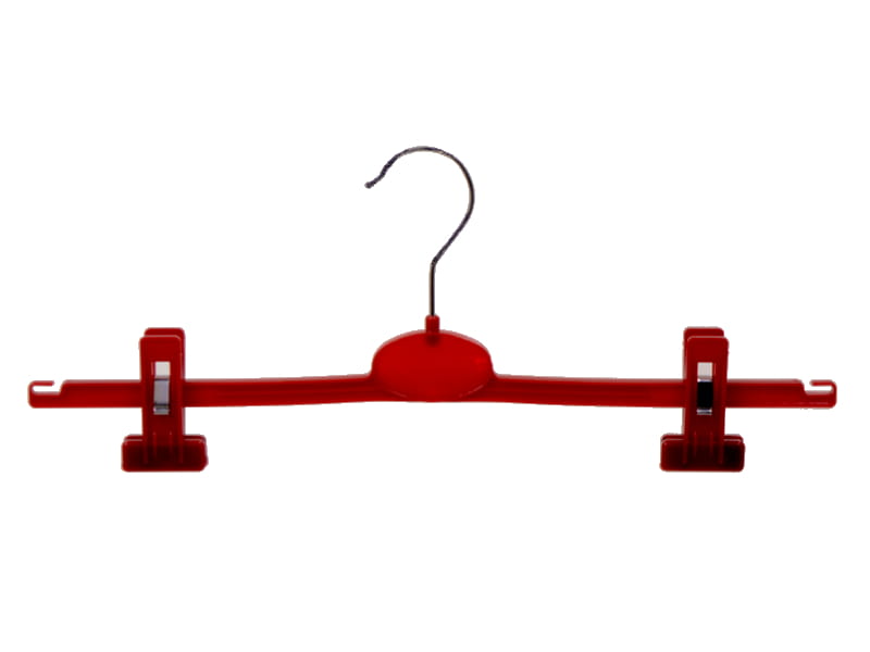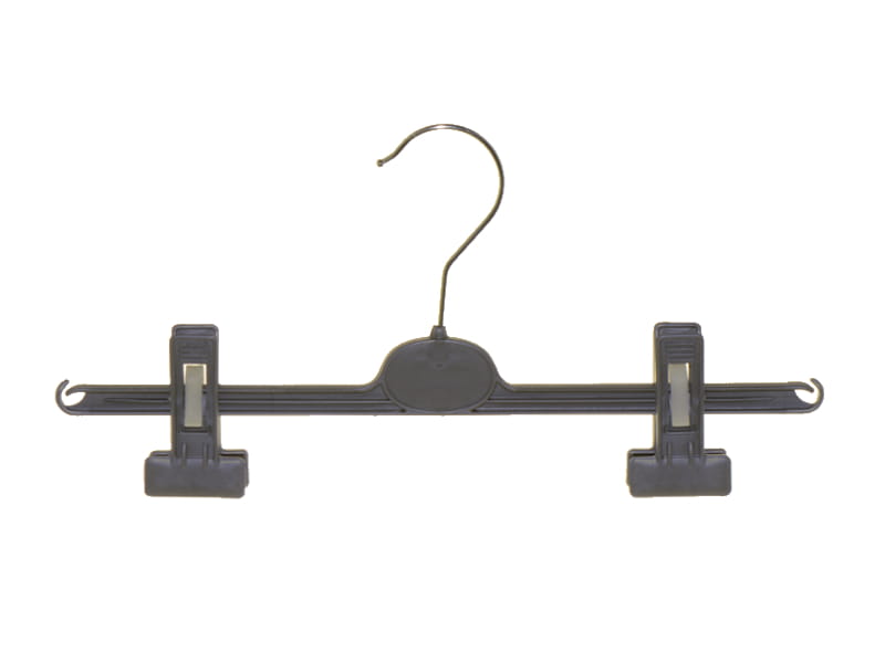 Hanger is designed mostly for skirts display but also for trousers. With clips sliding along arms - adjustment of separation between clips is from 15 cm to 32 cm. Hanger has under the clips the profiled, rubber strips, for which clothes are not damaged and does not fall from hanger. Special cuts at the end of hanger allows additional hang of clothes!
