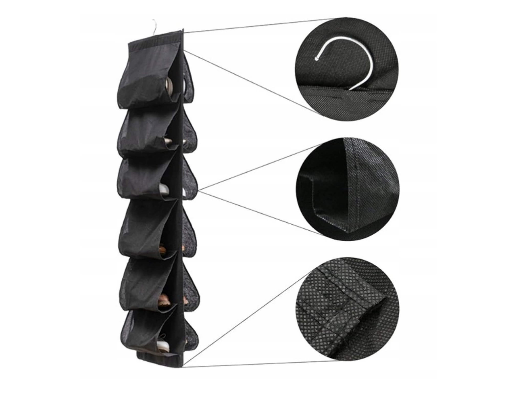 Shelf organiser with 12 partition. With this product, in easy way You can have order in every wardrobe or shelf. It is made of high quality breathable material and it is simple in cleaning. Sides are reinforced by cardboard, which make it more durable. This product hasn't upper cover, which enable us to have easier access to our items.