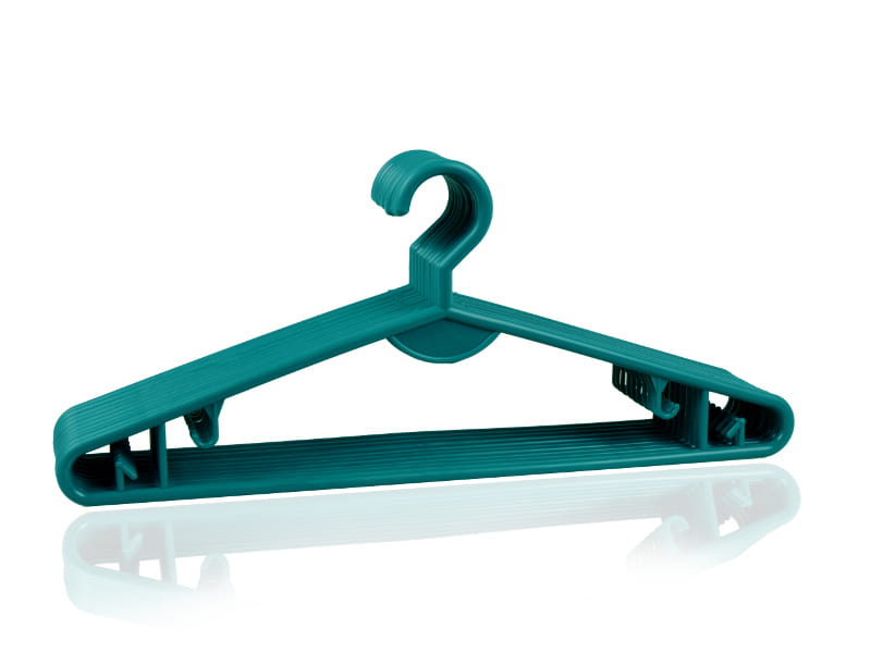 Universal garment hanger with bar is made of durable plastic, non-rotating. Hanger is designed for display shirts, cardigans, jackets, trousers, etc. It has various hooks. Perfect for display and store clothes.