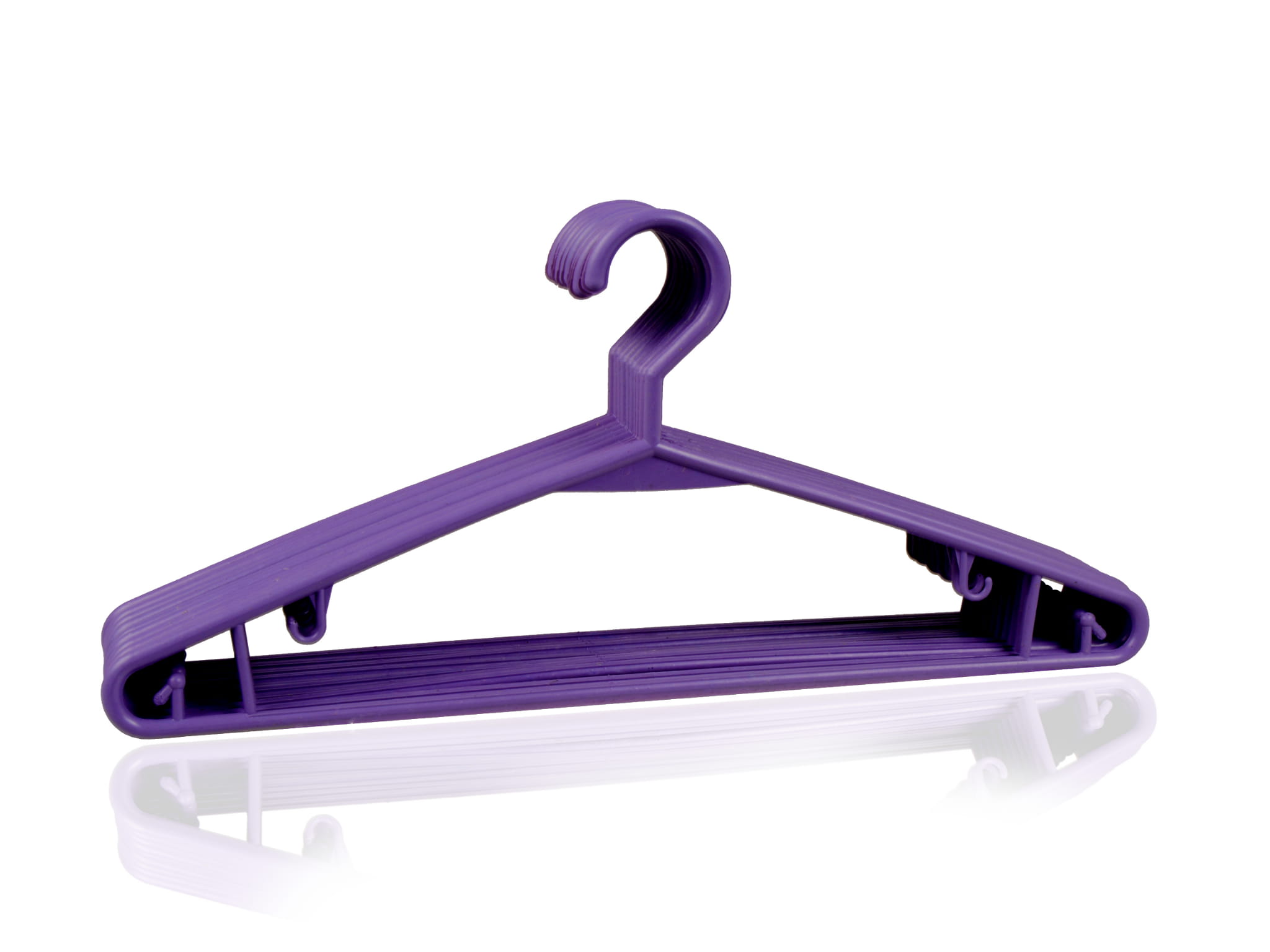 Universal garment hanger with bar is made of durable plastic, non-rotating. Hanger is designed for display shirts, cardigans, jackets, trousers, etc. Perfect for display and store clothes.