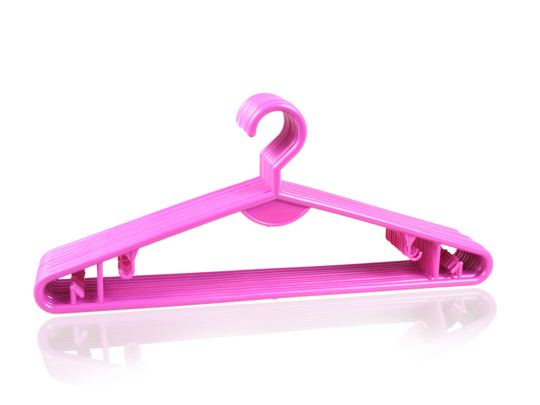 Universal garment hanger with bar is made of durable plastic, non-rotating. Hanger is designed for display shirts, cardigans, jackets, trousers, etc. It has various hooks. Perfect for display and store clothes.