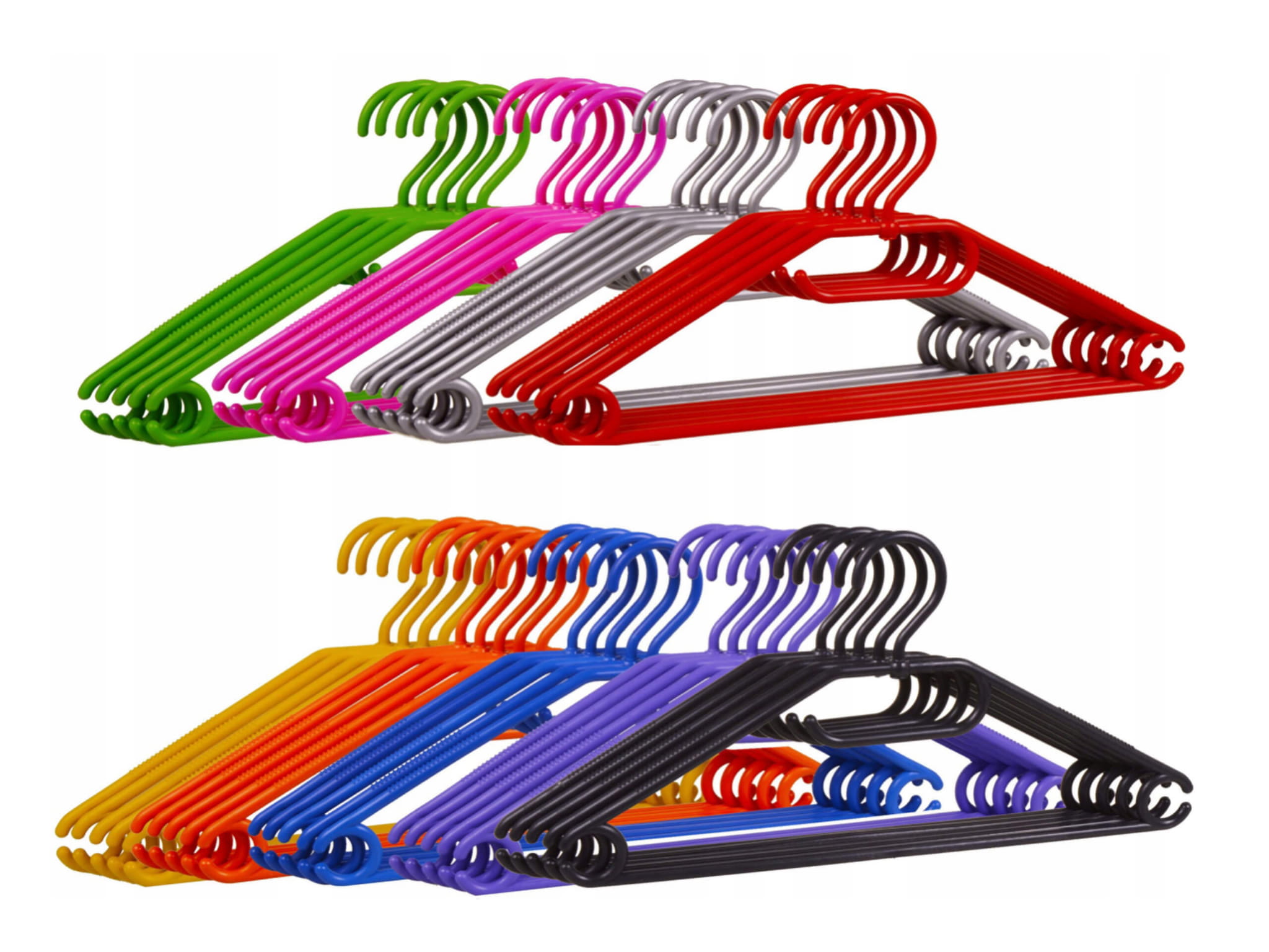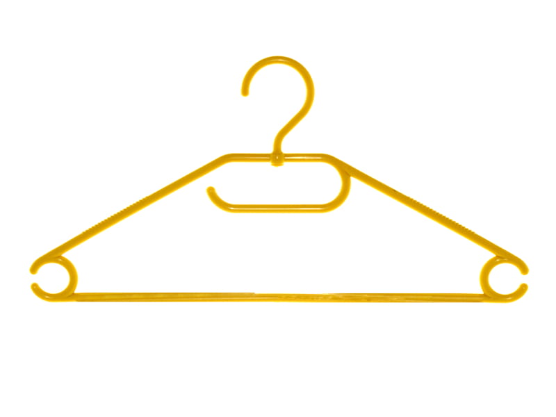 Universal garment hanger with top bar is made of durable plastic, non-rotating. Hanger to expose underwear, women's, men's, children's, and children's clothing, etc. Ideal for presentation and storage of clothing. Available in several colors.