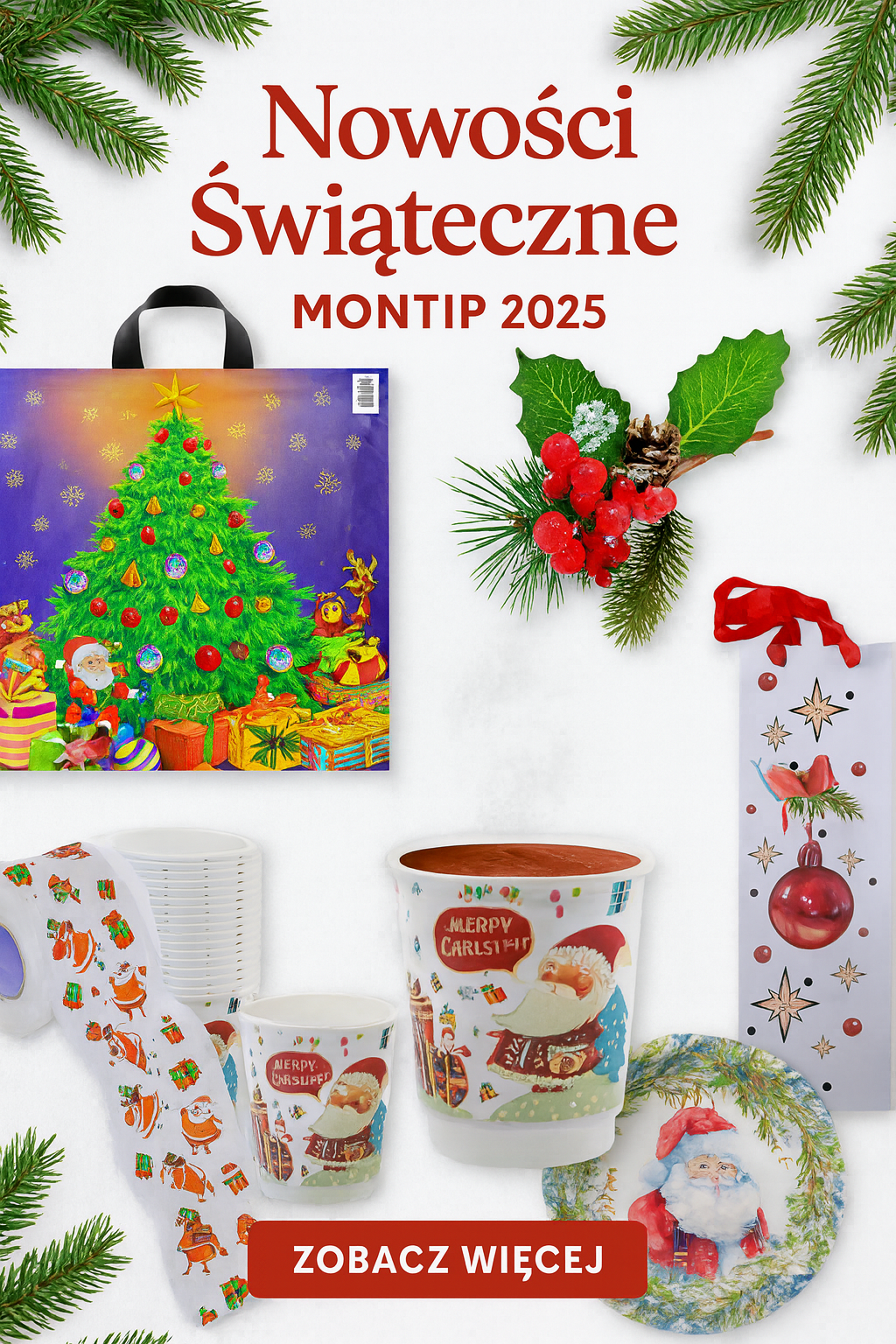 W tym roku przygotowaliśmy rozszerzoną kolekcję nowości świątecznych, obejmującą ozdoby, opakowania, dekoracje, kubki świąteczne, wieńce na drzwi, torby prezentowe, serwetki i wiele innych produktów, które tworzą prawdziwie magiczną atmosferę Bożego Narodzenia.
