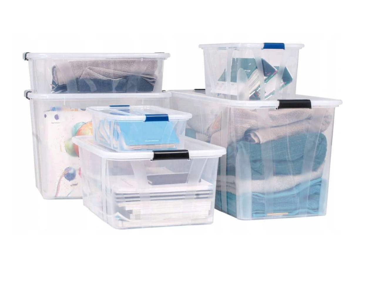 Duże pojemniki do przechowywania z pokrywą zamykaną na klipsy zatrzaskowe pozwalają na uporządkowanie i przechowywanie sezonowych rzeczy jak np. ozdoby świąteczne czy letnią pościel. Można je śmiało przenieść do strychu czy piwnicy, bez obaw, że coś się stanie z rzeczami zapakowanymi w środku.