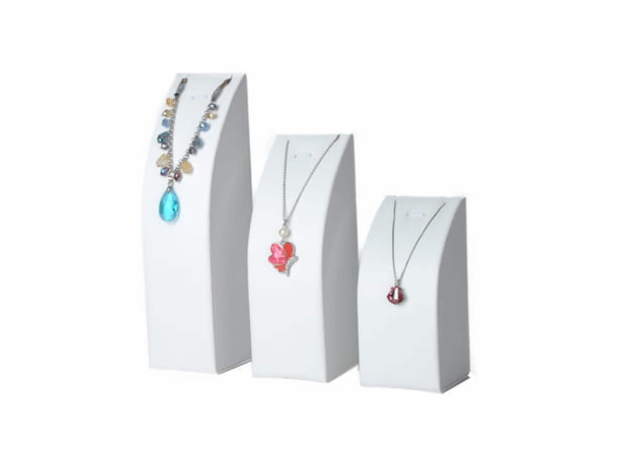 Zestaw ekspozytorów na naszyjniki i zawieszki – 3 sztuki, biały, ekoskóra