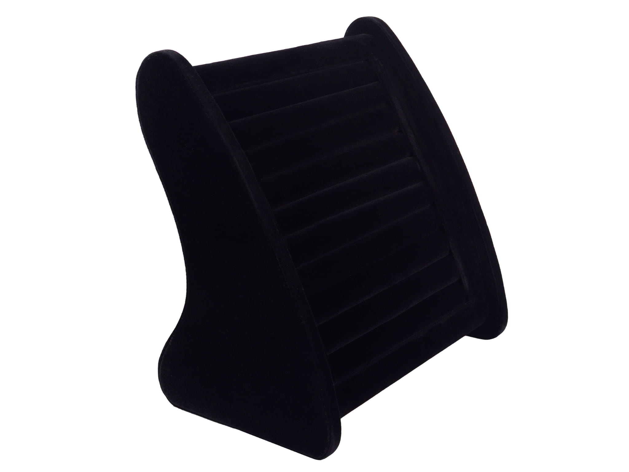 Stylowy ekspozytor z podwójnym wałkiem na stabilnej, prostokątnej podstawie, wykończony eleganckim zamszem w głębokim odcieniu czerni. Idealny do efektownego prezentowania biżuterii – zarówno w sklepie, jak i w domowej garderobie...