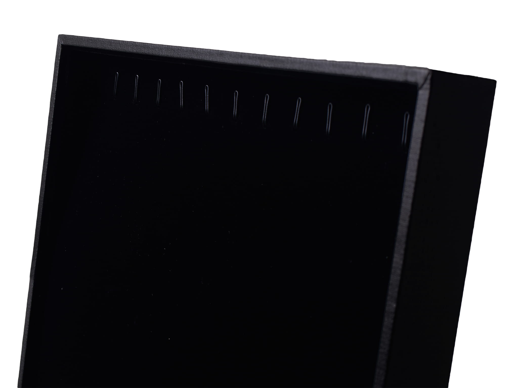 Ekspozytor na biżuterię – czarna tacka z 11 uchwytami