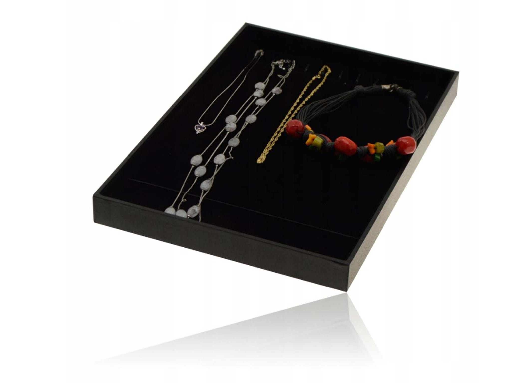 Ekspozytor tacka na biżuterię, kolczyki, łańcuszki, wisiorki, bransoletki czarny welur