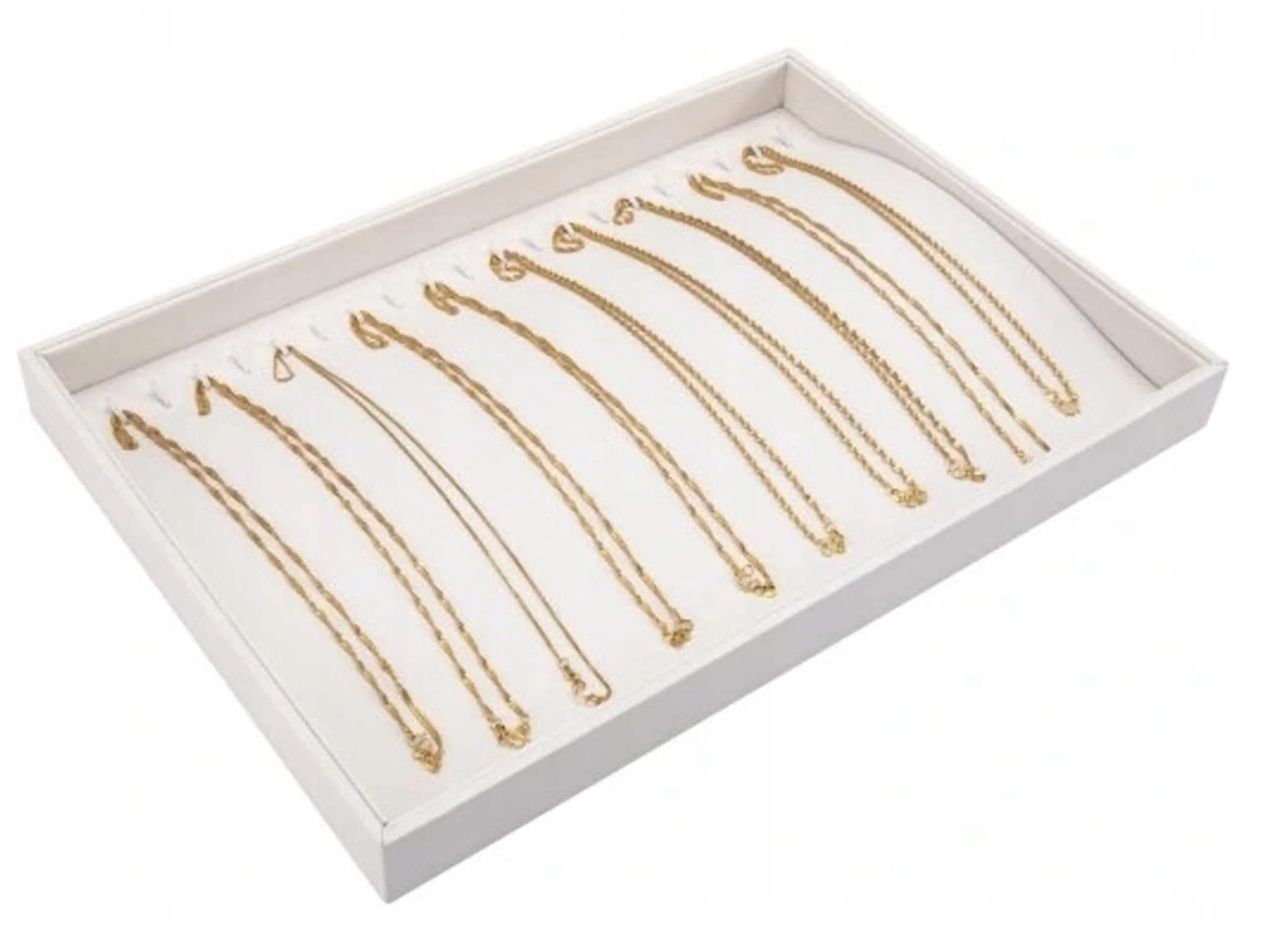 Elegancka tacka do prezentacji łańcuszków, zawieszek, breloczków i innych drobiazgów. Doskonała zarówno do użytku domowego, jak i profesjonalnego – w butikach, na stoiskach czy w salonach jubilerskich.