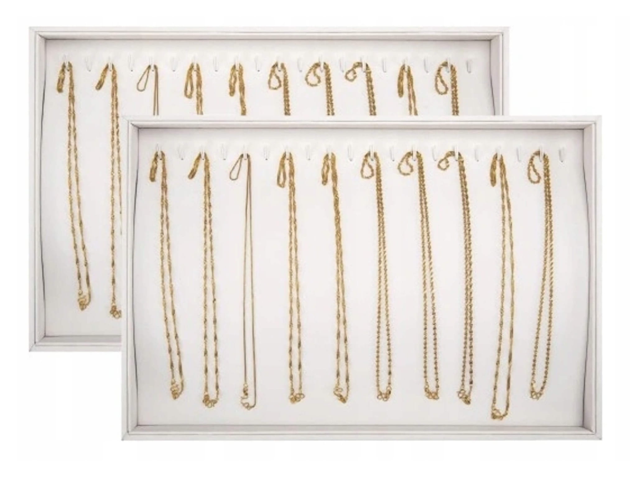 Ekspozytor tacka do biżuterii stojak na łańcuszki biały 14 zawieszek
