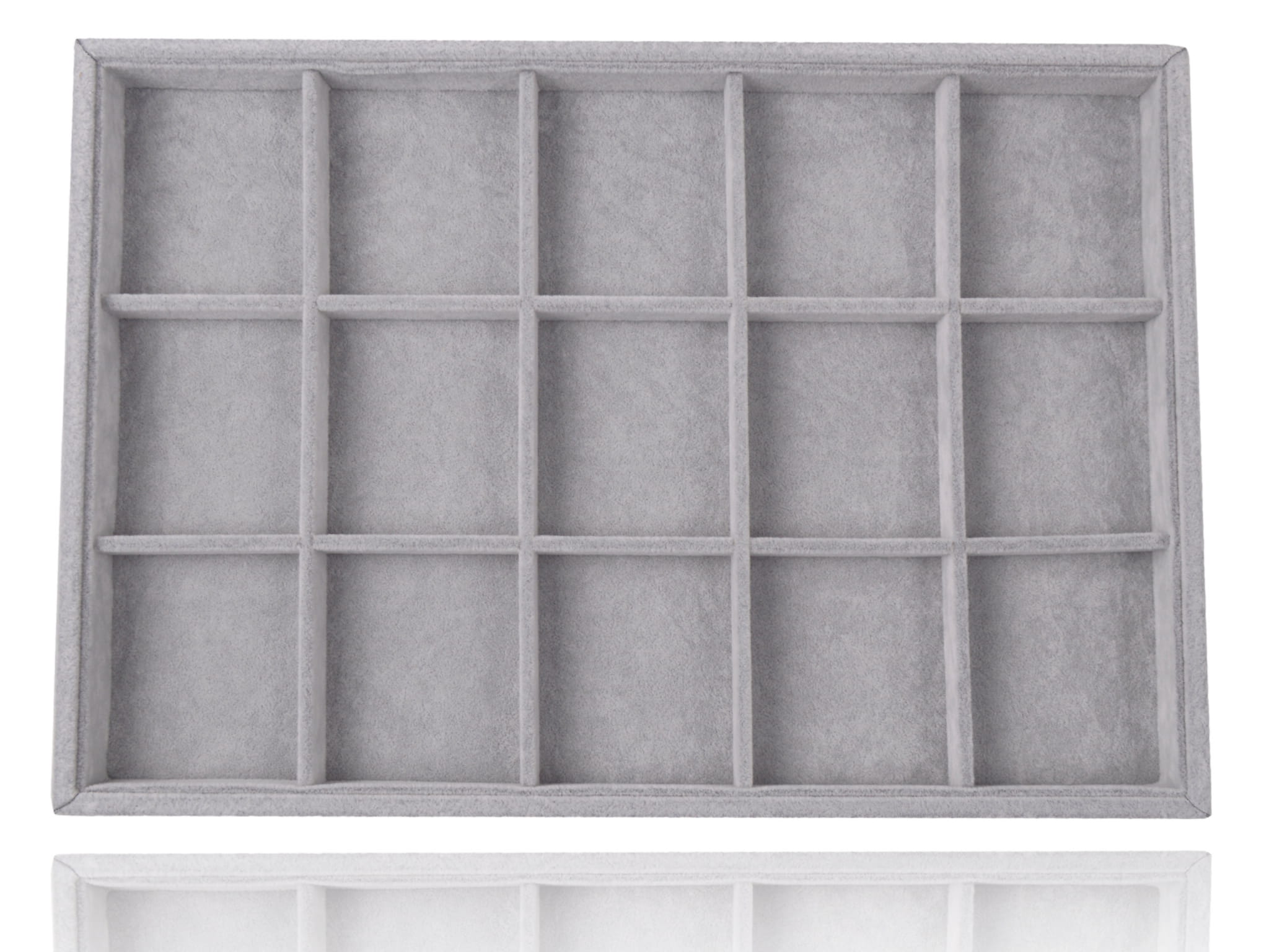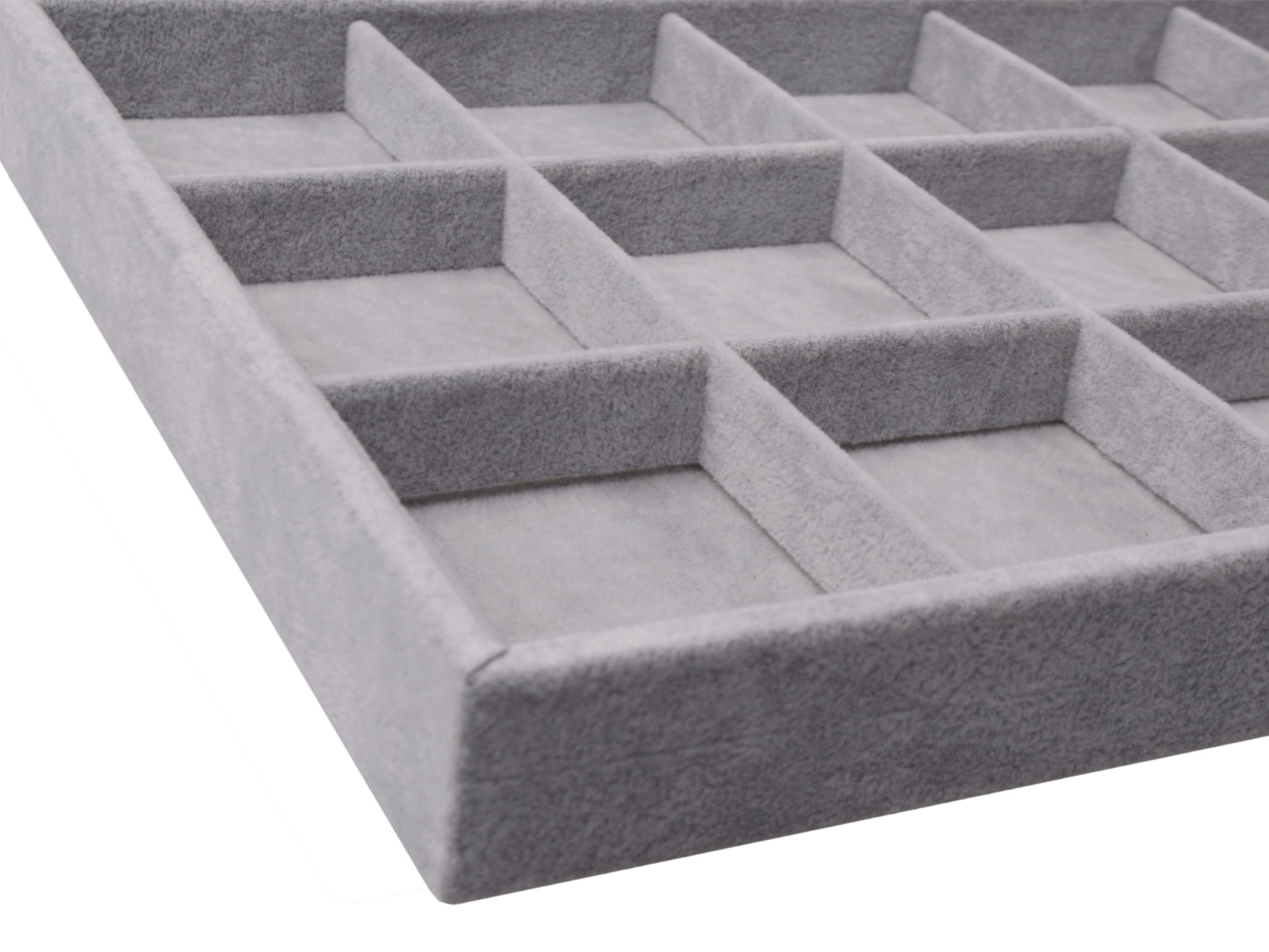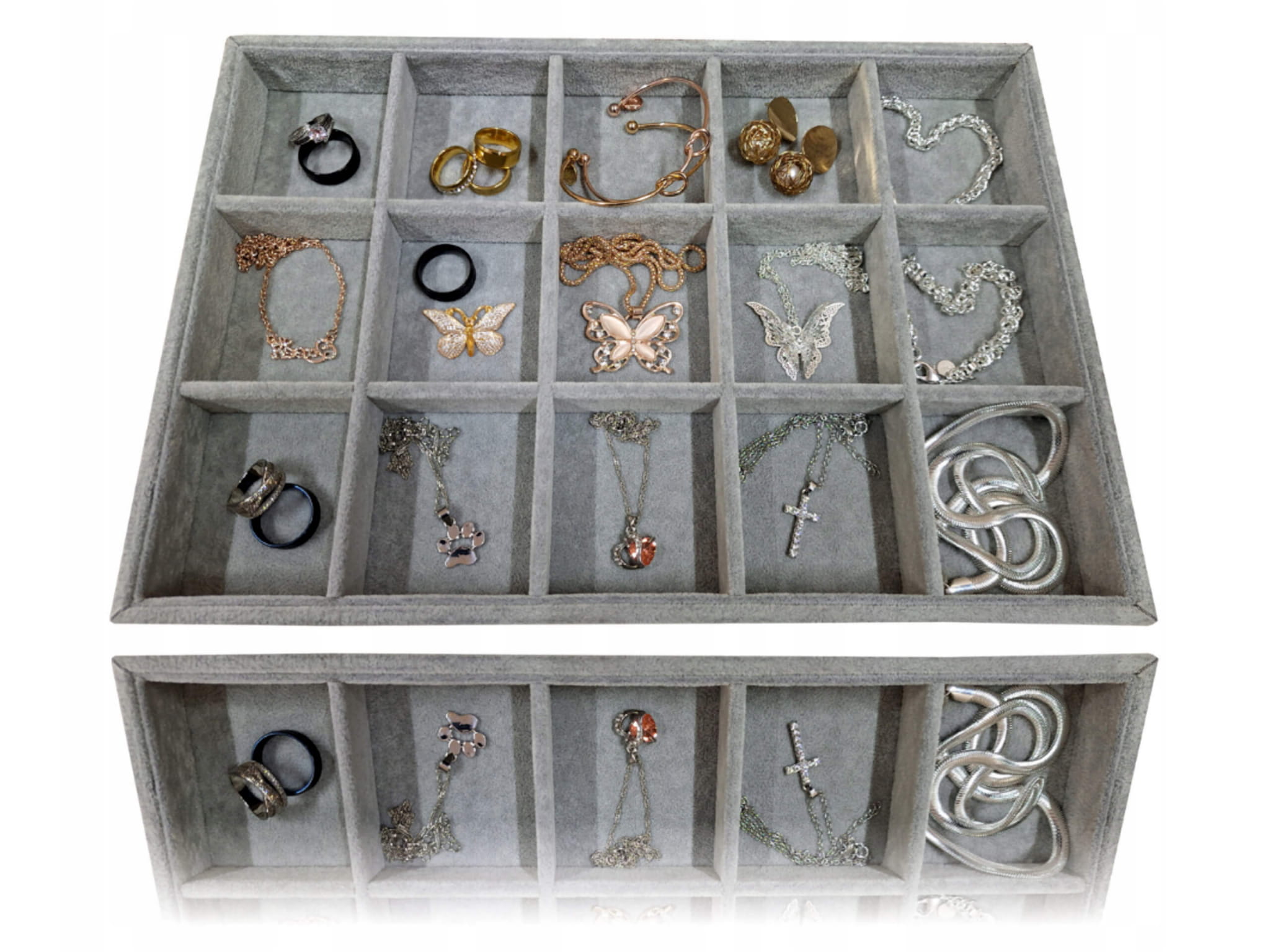 Ekspozytor tacka na biżuterię z przegrodami do segregowania szary welur