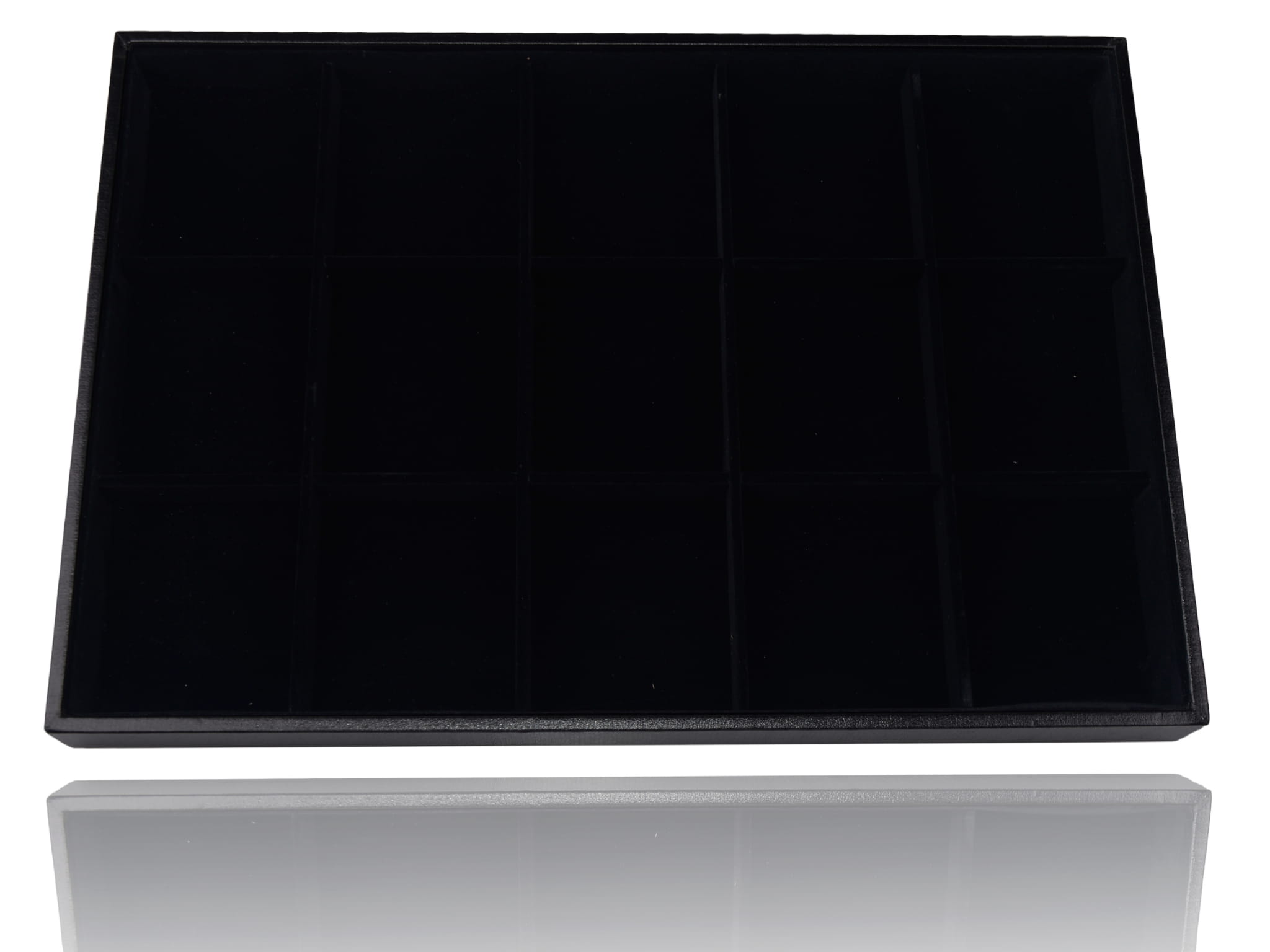 Ekspozytor na biżuterię – czarna tacka z 12 przegródkami