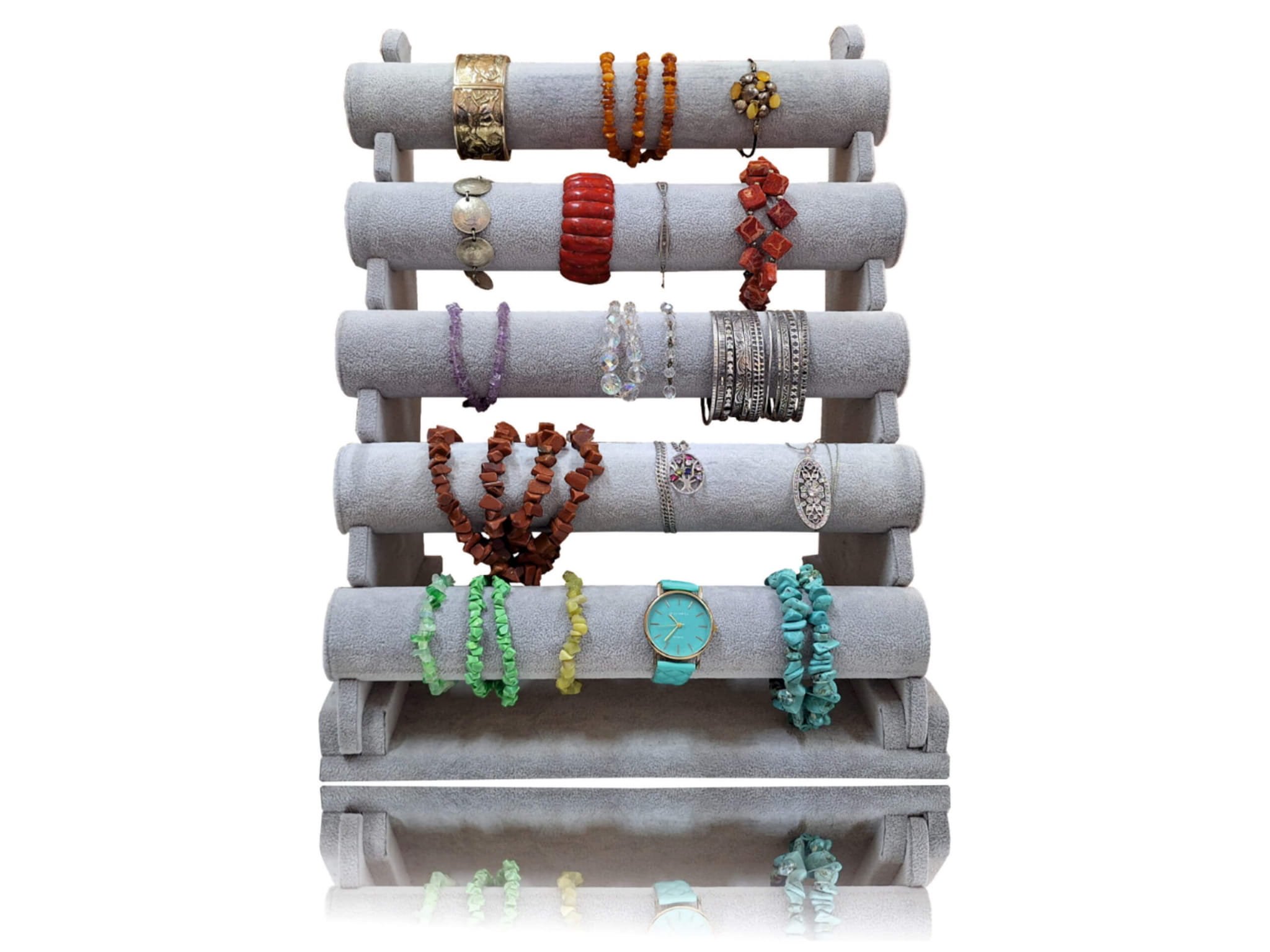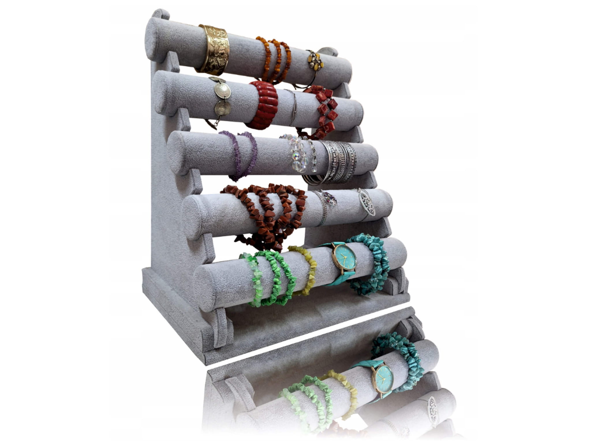 Ekspozytor wałek pięciopoziomowy na biżuterię, łańcuszki, zegarki, bransoletki szary
