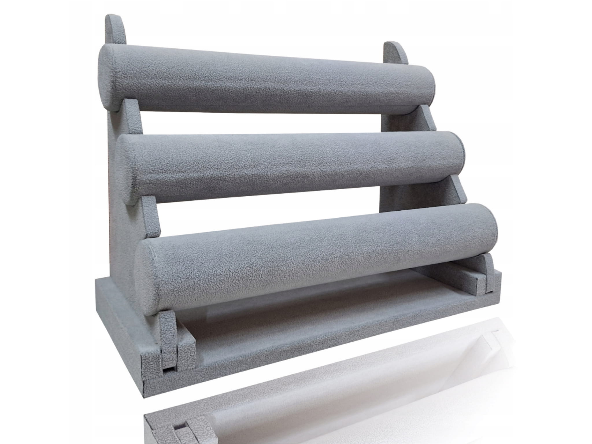 Ekspozytor wałek potrójny, trzy wałki na biżuterię, łańcuszki, zegarki, bransoletki szary