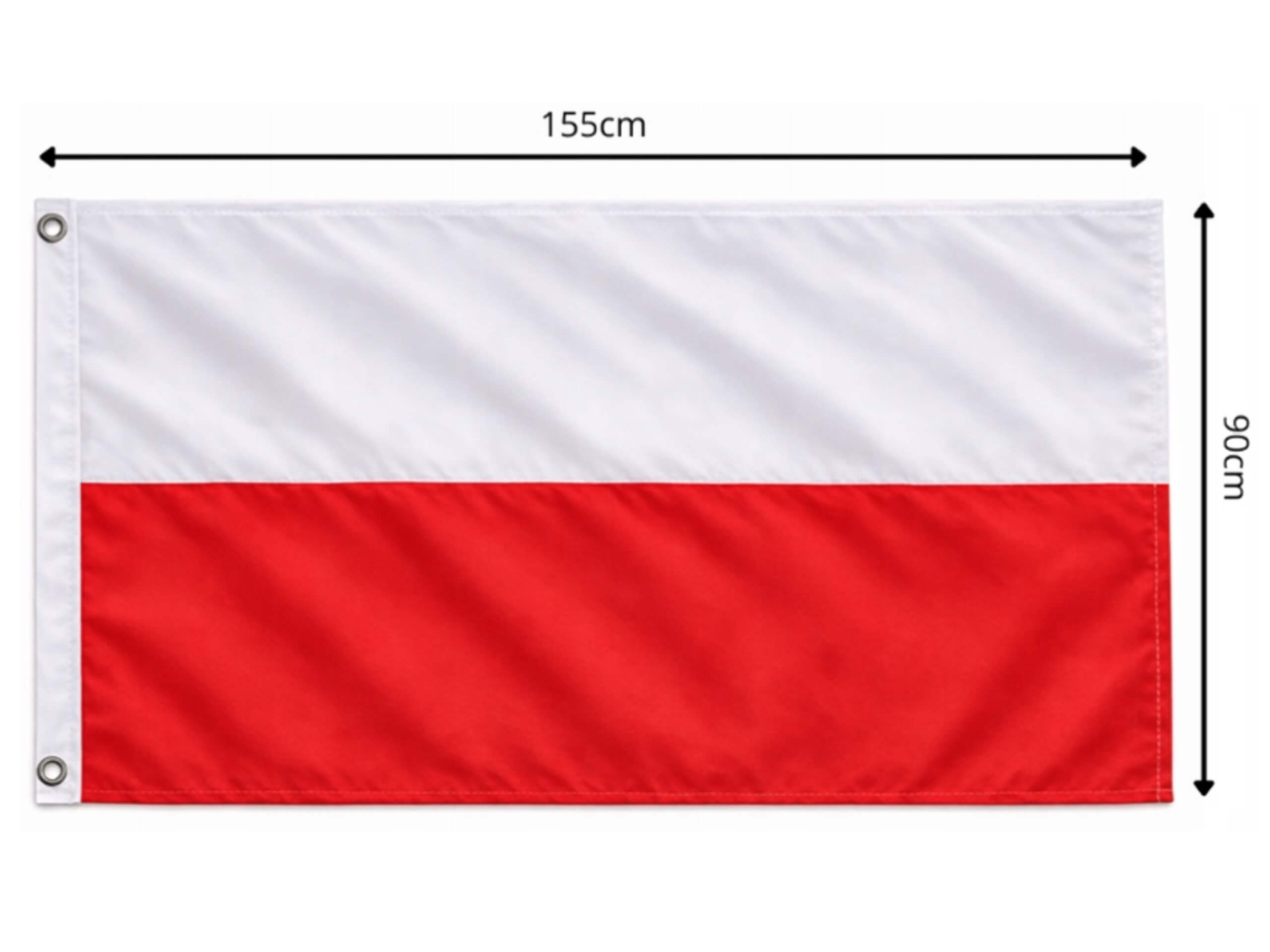 Flaga Polski 155x90 cm na balkon, maszt, materiałowa biało-czerwona