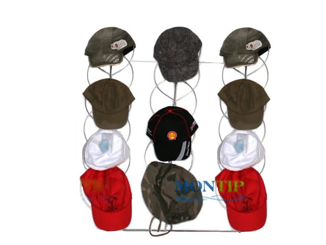 Wysoka jakość — Zawieszka wykonana z trwałego metalu pokrytego powłoką ocynkowaną, co zabezpiecza przed korozją i uszkodzeniami mechanicznymi. Solidne obręcze zapewniają pewne utrzymanie czapek, a przemyślana konstrukcja pozwala na łatwy dostęp do eksponowanego towaru.