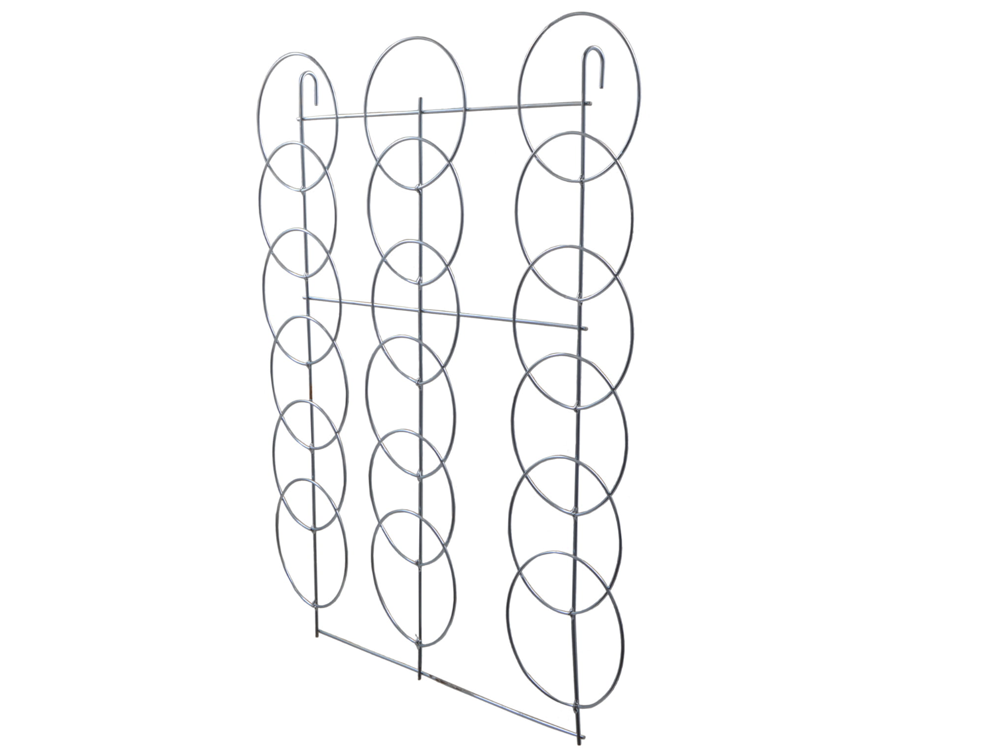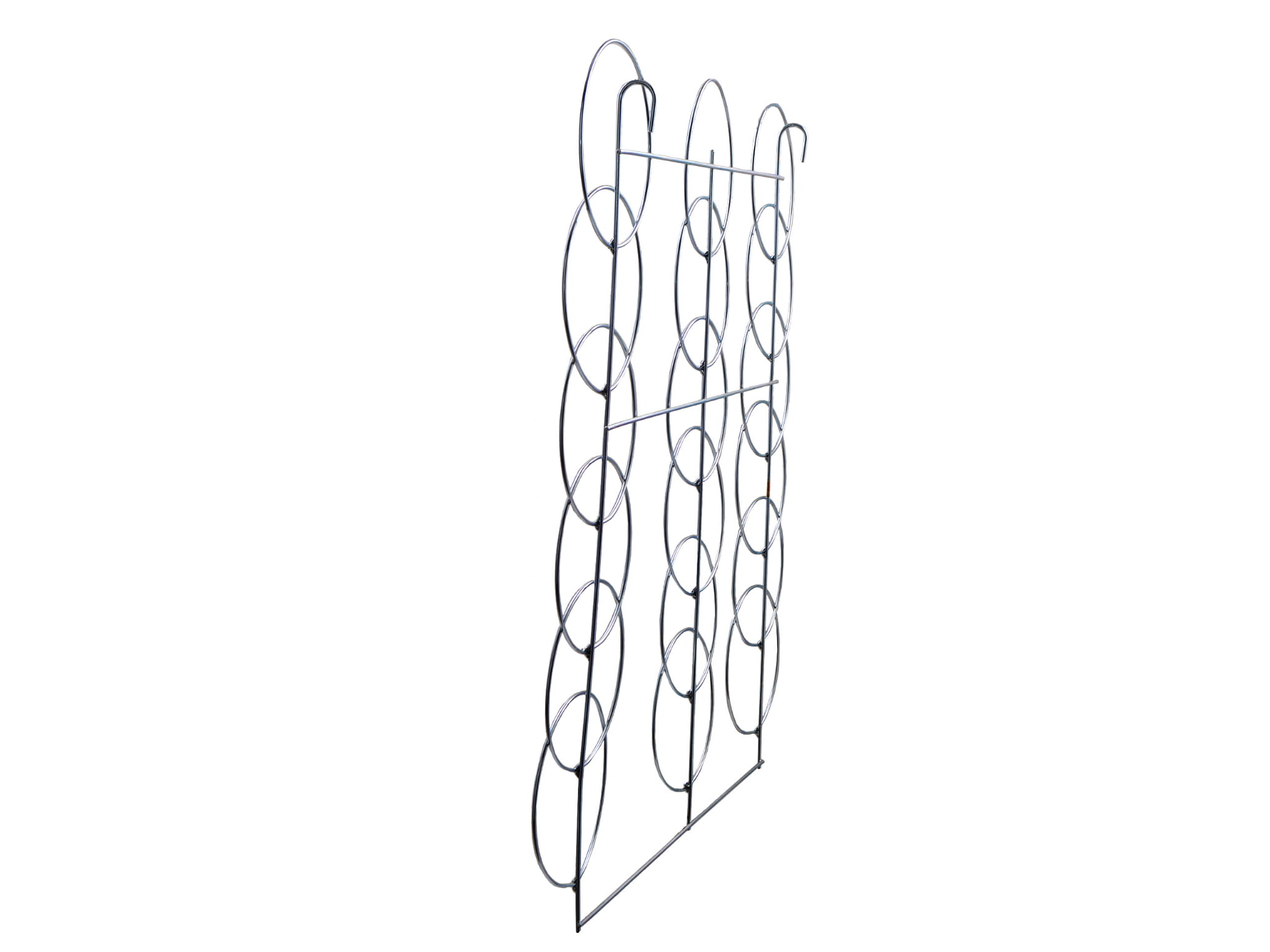 Praktyczna zawieszka do ekspozycji czapek, wyposażona w 18 uchwytów w formie obręczy. Możliwość montażu na kratkę, ścianę lub inne powierzchnie, w zależności od potrzeb. Dzięki solidnej konstrukcji doskonale sprawdzi się w sklepach, magazynach i na stoiskach wystawowych.
