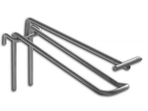 Zawieszka pojedyncza do zawieszania na kratkę, w kolorze srebrnym, idealna do ekspozycji różnego rodzaju towaru...