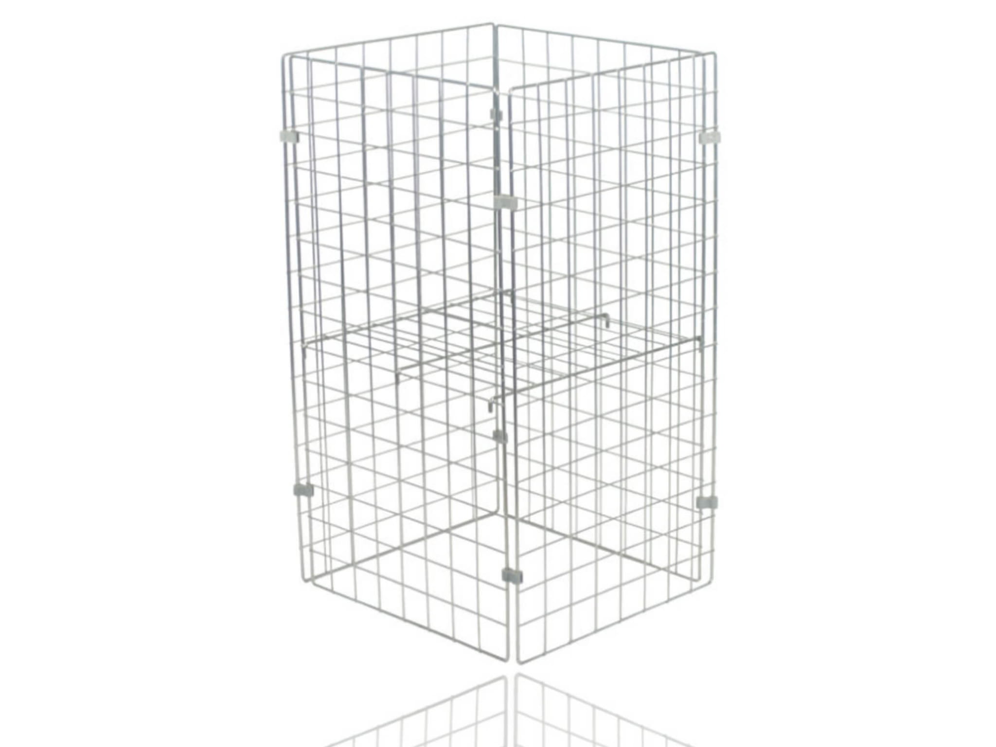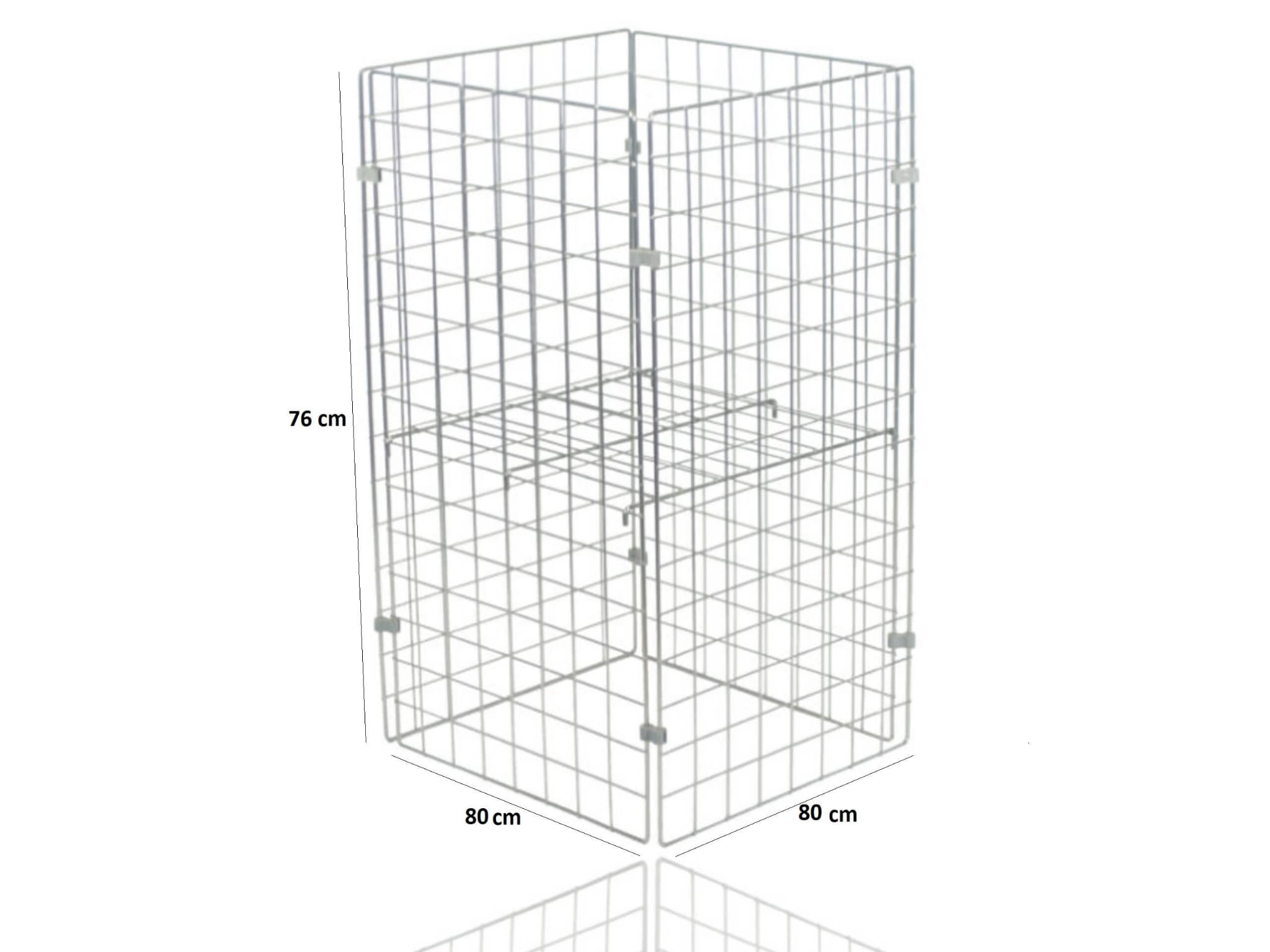 Kosz sklepowy wyprzedażowy z plastikowymi zapinkami o wymiarach 80x80x76 cm, wykonany z drutu o dużej wytrzymałości. Idealny do ekspozycji produktów podczas promocji, wyprzedaży czy specjalnych okazji. Dzięki regulowanemu dnu, kosz można dostosować do różnych rodzajów towarów. Szybki i prosty montaż dzięki plastikowym zapinkom, a po złożeniu kosz zajmuje mało miejsca.