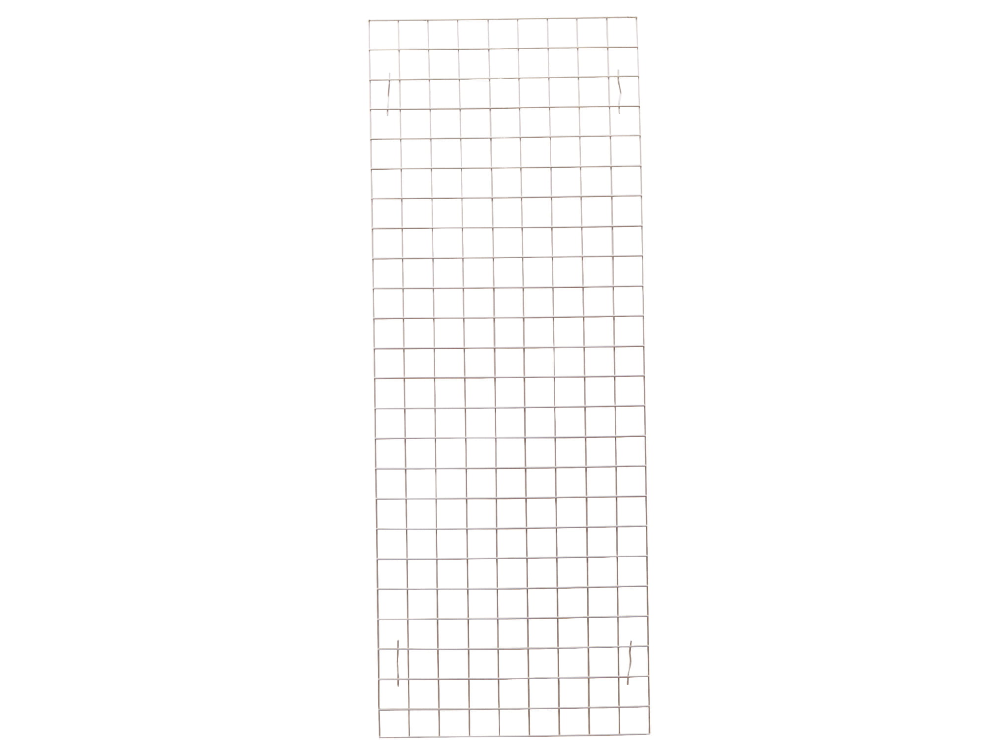 Gruba srebrna kratownica o wymiarach 200 × 100 cm, wykonana z mocnego drutu o średnicy 4,2 mm. Idealna do eksponowania towarów o większym ciężarze...