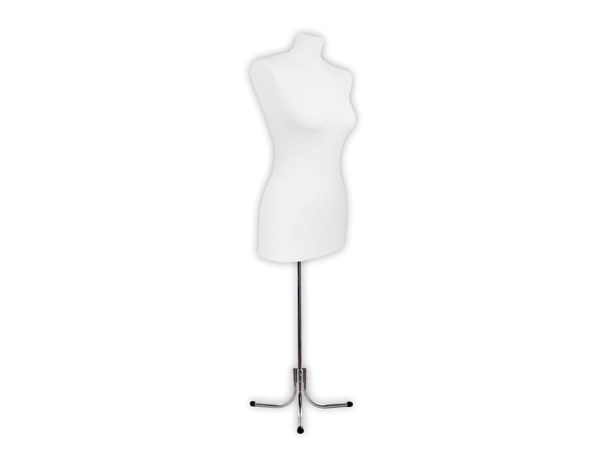 Solidny i estetyczny manekin krawiecki damski w rozmiarze 34/36, wykonany ze spienionego polistyrenu. Wyposażony w stabilną, regulowaną nogę z chromowanej stali, dostępnej w kilku kształtach. Idealny do ekspozycji i pracy krawieckiej.