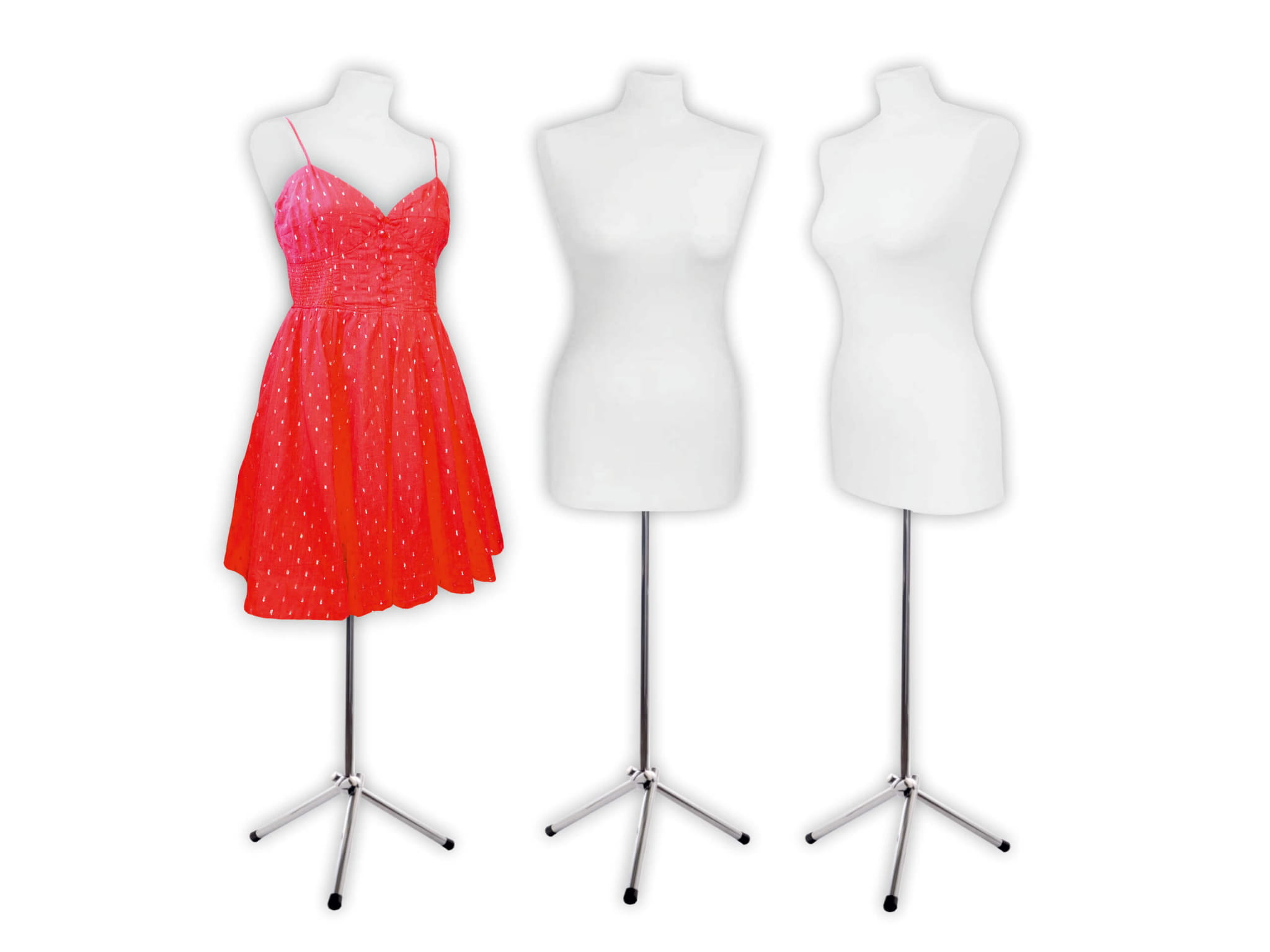 Wysoka jakość — Wykonany z lekkiego, a zarazem wytrzymałego styropianu manekin jest łatwy w obsłudze i wyjątkowo praktyczny. Umożliwia podpinanie tkanin szpilkami, co czyni go narzędziem funkcjonalnym w codziennej pracy. Chromowana noga z możliwością wyboru kształtu oraz elastyczne, zdejmowane koszulki w różnych kolorach podnoszą walory estetyczne i użytkowe produktu.