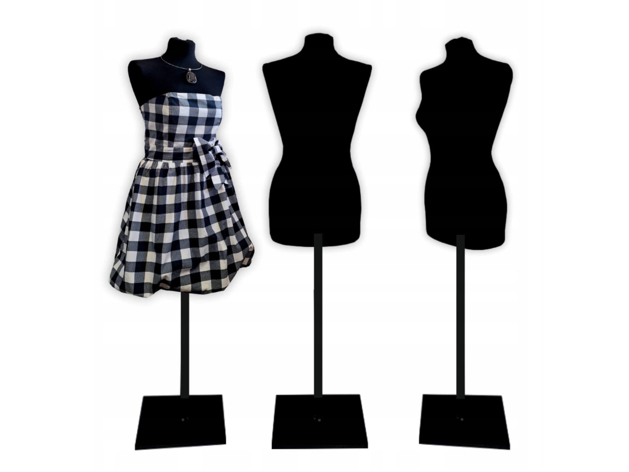 Damski manekin krawiecki 36/38 ze styropianu z czarną nogą na płycie meblowej