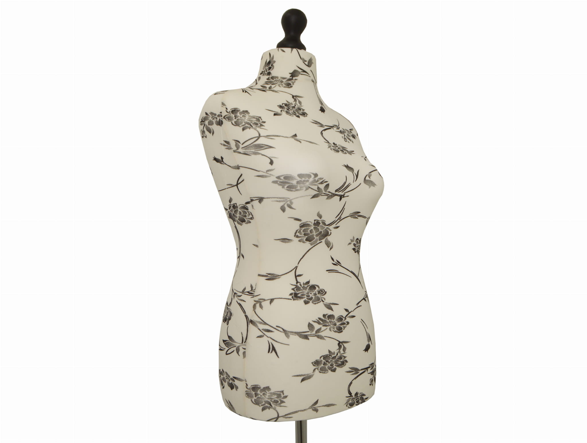 Manekin damski krawiecki - 36/38 z drewnianym stojakiem i wzorzystą koszulką