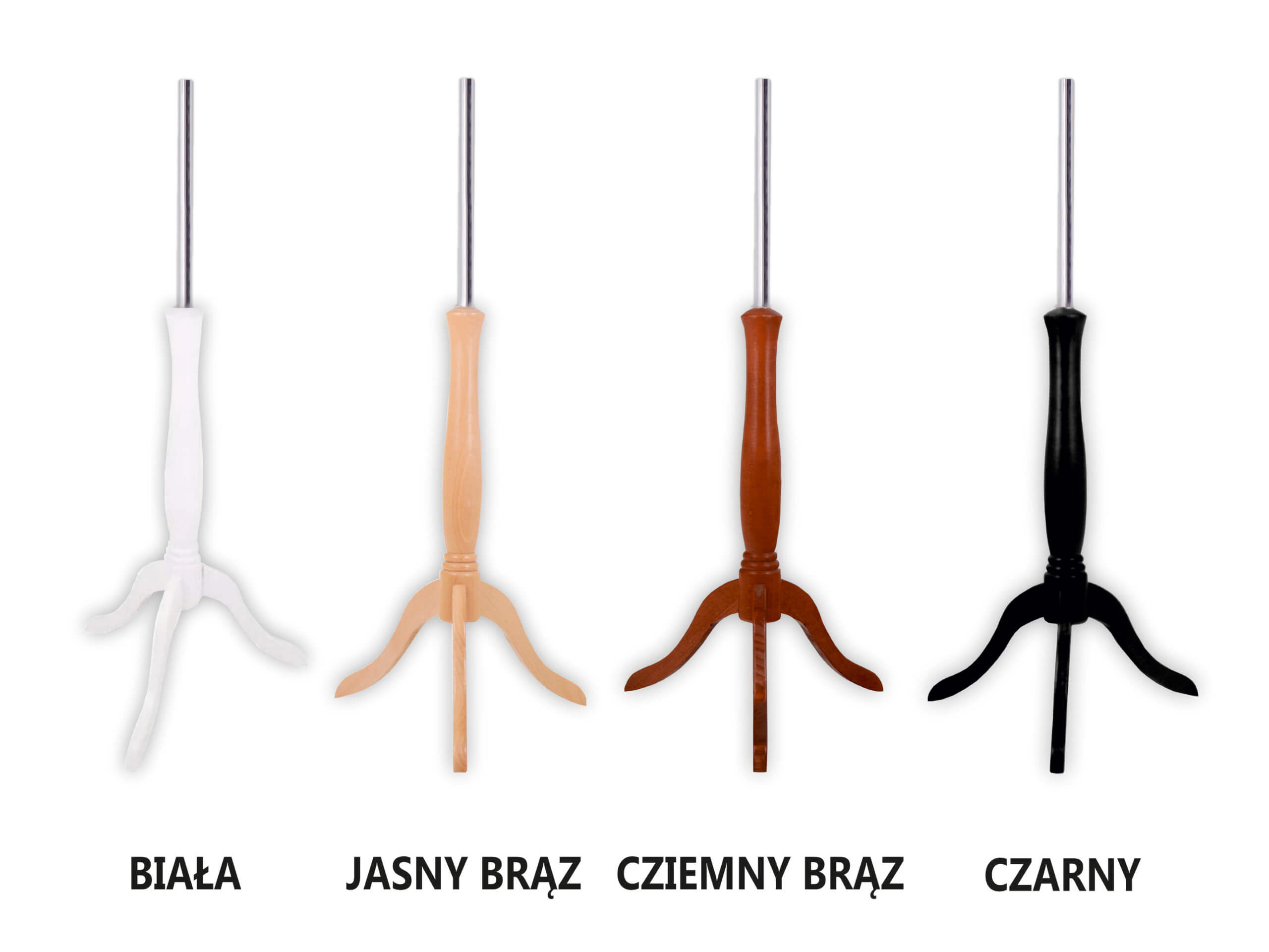 - Rodzaj nogi/podstawy: drewniana, regulowana (od ok. 158 cm do ok. 172 cm)