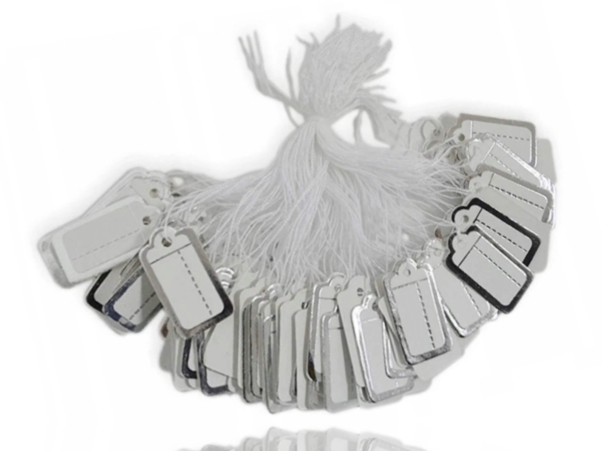 - Ilość w komplecie: 100 szt. (każda ze sznurkiem do przymocowania)