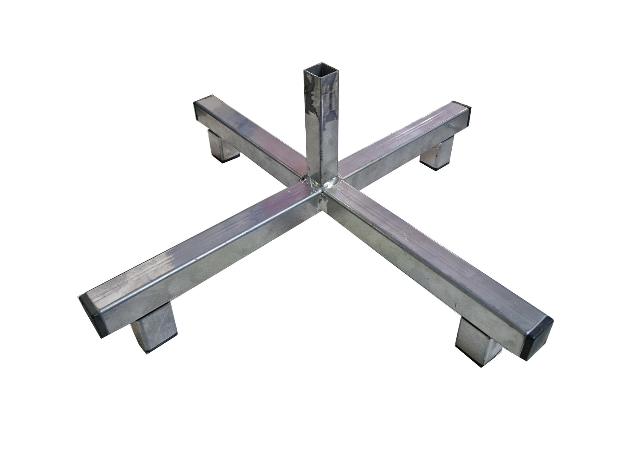 Uniwersalna stalowa podstawa do stojaka obrotowego, malowana proszkowo na kolor srebrny. Solidna konstrukcja zapewnia stabilność, a kompaktowe wymiary pozwalają na wszechstronne zastosowanie.