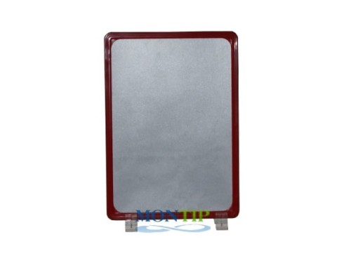 Ramka plakatowa wykonana z tworzywa sztucznego w kolorze czerwonym, format A3 z folią antyrefleksyjną, w komplecie z podstawkami umożliwiającymi postawienie ramki pod kątem 75° lub 90°. Idealna do prezentacji informacji, promocji i reklam w sklepach. Ramkę można postawić zarówno w pionie, jak i w poziomie.