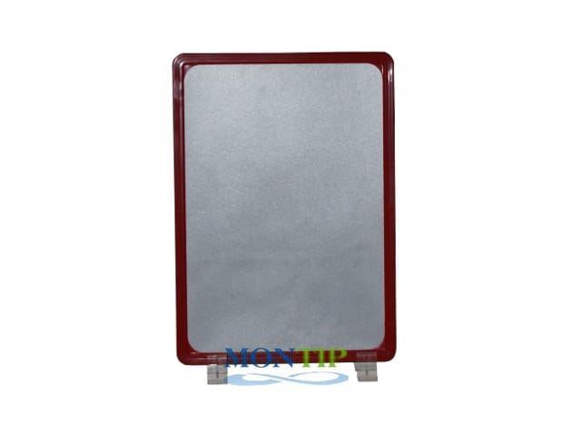 Ramka plakatowa wykonana z tworzywa sztucznego w kolorze czerwonym, format A4 z folią antyrefleksyjną, w komplecie z podstawkami umożliwiającymi postawienie ramki pod kątem 75° lub 90°. Idealna do prezentacji informacji, promocji i reklam w sklepach. Ramkę można postawić zarówno w pionie, jak i w poziomie.