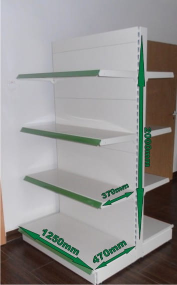Idealny do każdego sklepu regał metalowy o lekkiej konstrukcji (nogi regału wykonane są z profila 40x40 mm). Malowany proszkowo na kolor biały. Szerokość regału w osi 97,8 cm. Maksymalne obciążenie regału wynosi ok. 200 kg pod warunkiem równomiernego rozłożenia towaru na półkach (obciążenie musi się zmniejszać wraz z wyższym poziomem półki o ok. 10%)
