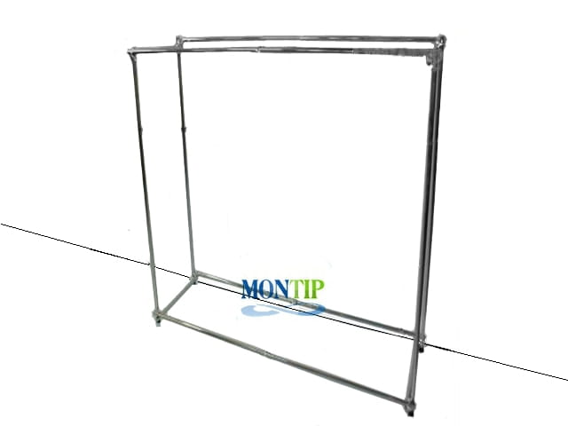 Stojak na ubrania z kółkami / bez kółek z poprzeczką pojedynczy wolnostojący 1,6x1,8x0,5m CHROM