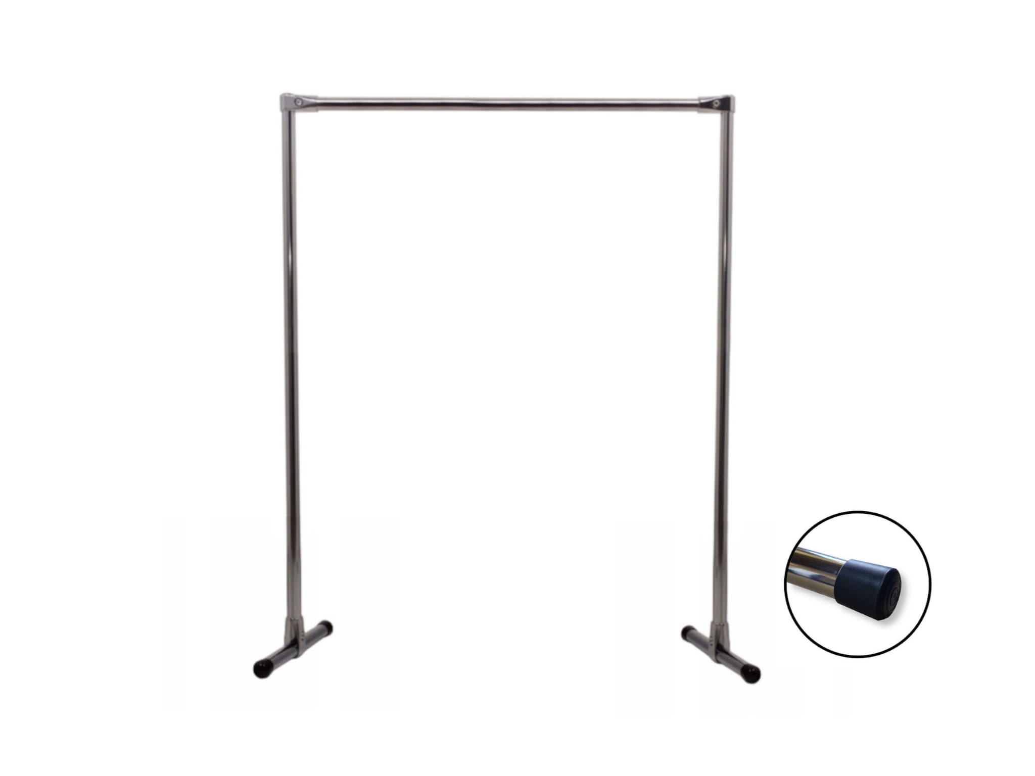 Stojak na ubrania z kółkami / bez kółek z poprzeczką pojedynczy wolnostojący 1,6x1,8x0,5m CHROM