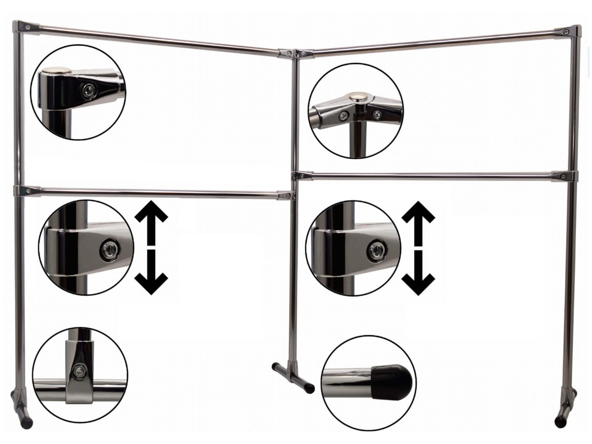 Stojak na ubrania narożny podwójny z kółkami / bez kółek z poprzeczką, regulowany wolnostojący 2x2x0,5m CHROM