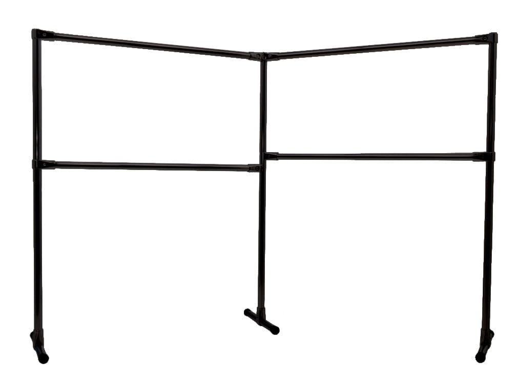 Stojak na ubrania narożny podwójny z kółkami / bez kółek z poprzeczką, regulowany wolnostojący 2x2x0,5m CZARNY