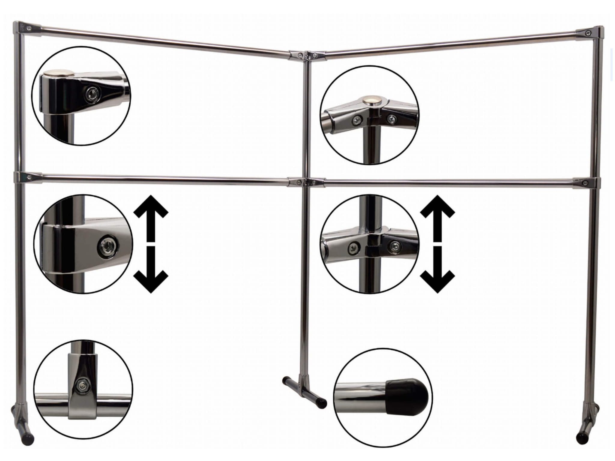 Stojak na ubrania narożny podwójny z kółkami / bez kółek z poprzeczką, regulowany wolnostojący 2x2x0,5m CHROM