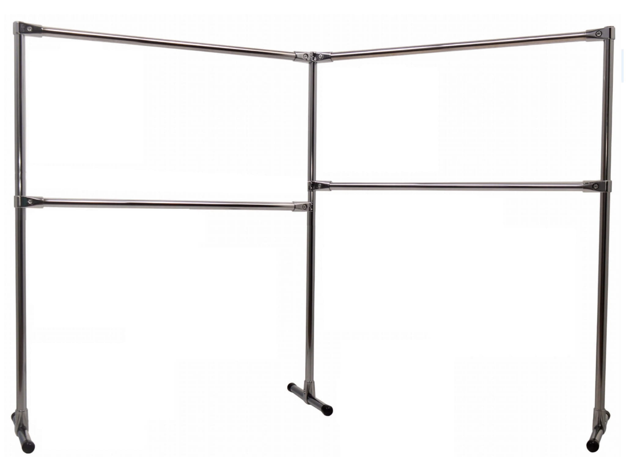 Stojak na ubrania narożny podwójny z kółkami / bez kółek z poprzeczką, regulowany wolnostojący 2x2x0,5m CHROM