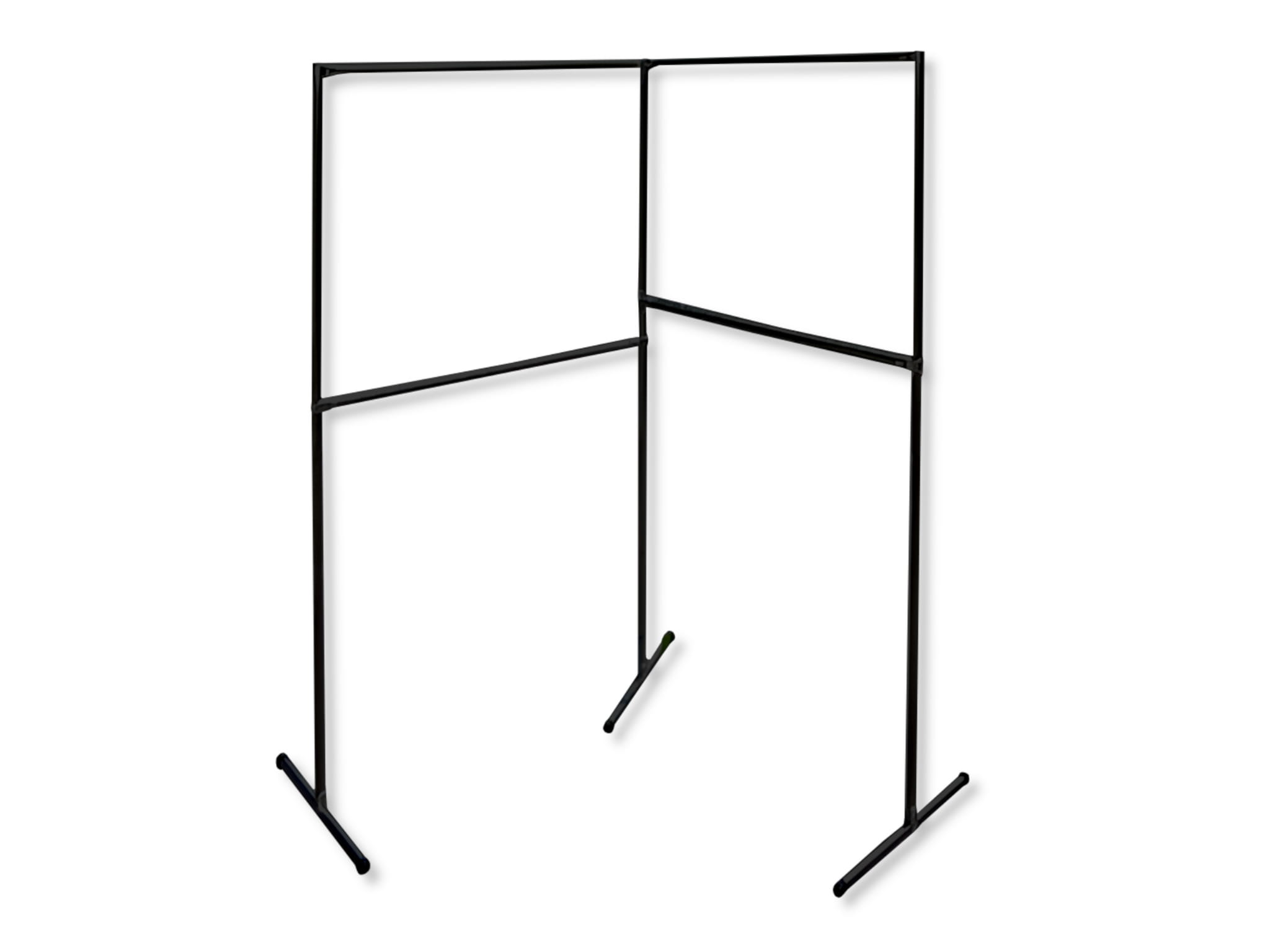 STOJAK ODZIEŻOWY PODWÓJNY Z REGULOWANĄ POPRZECZKĄ, wykonany z czarnej rury fi 25.
