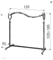 Stojak na odzież pojedyncza poprzeczka: - regulowana wysokość - kółka o gwincie M-8mm. Wymiary: Szerokość: 120 cm. + 2 wysuwane ramiona, każde o dł. 45cm. Głębokość: 50 cm Wysokość: od 112cm do 185 cm. Kolor: dolna część stojaka malowana proszkowo na kolor czarny, górna pokryta chromem galwanicznym.