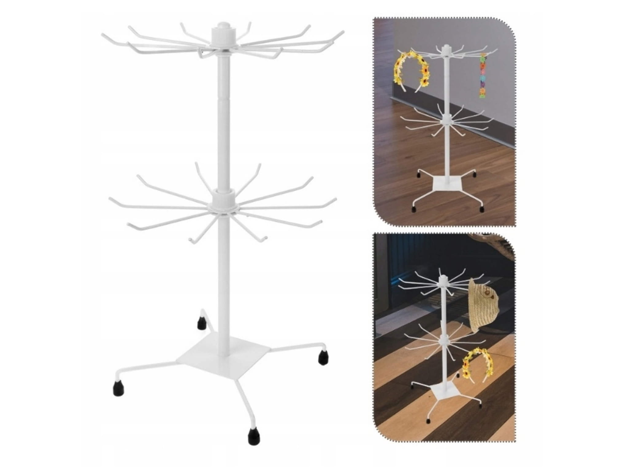 Obrotowy stojak, wieszak na krawaty, biżuterię (korale, wisiorki), apaszki, ewentualnie skarpetki.