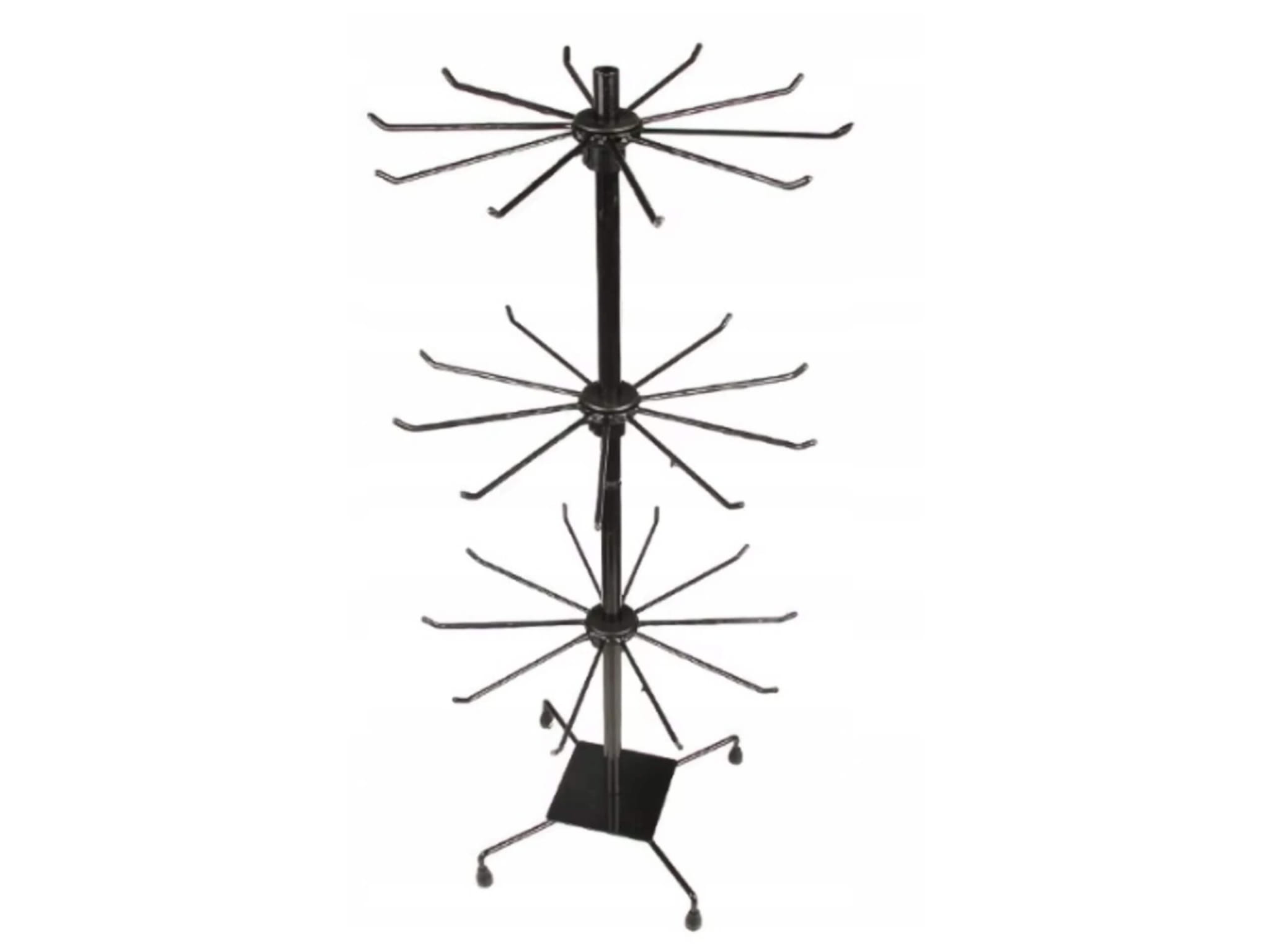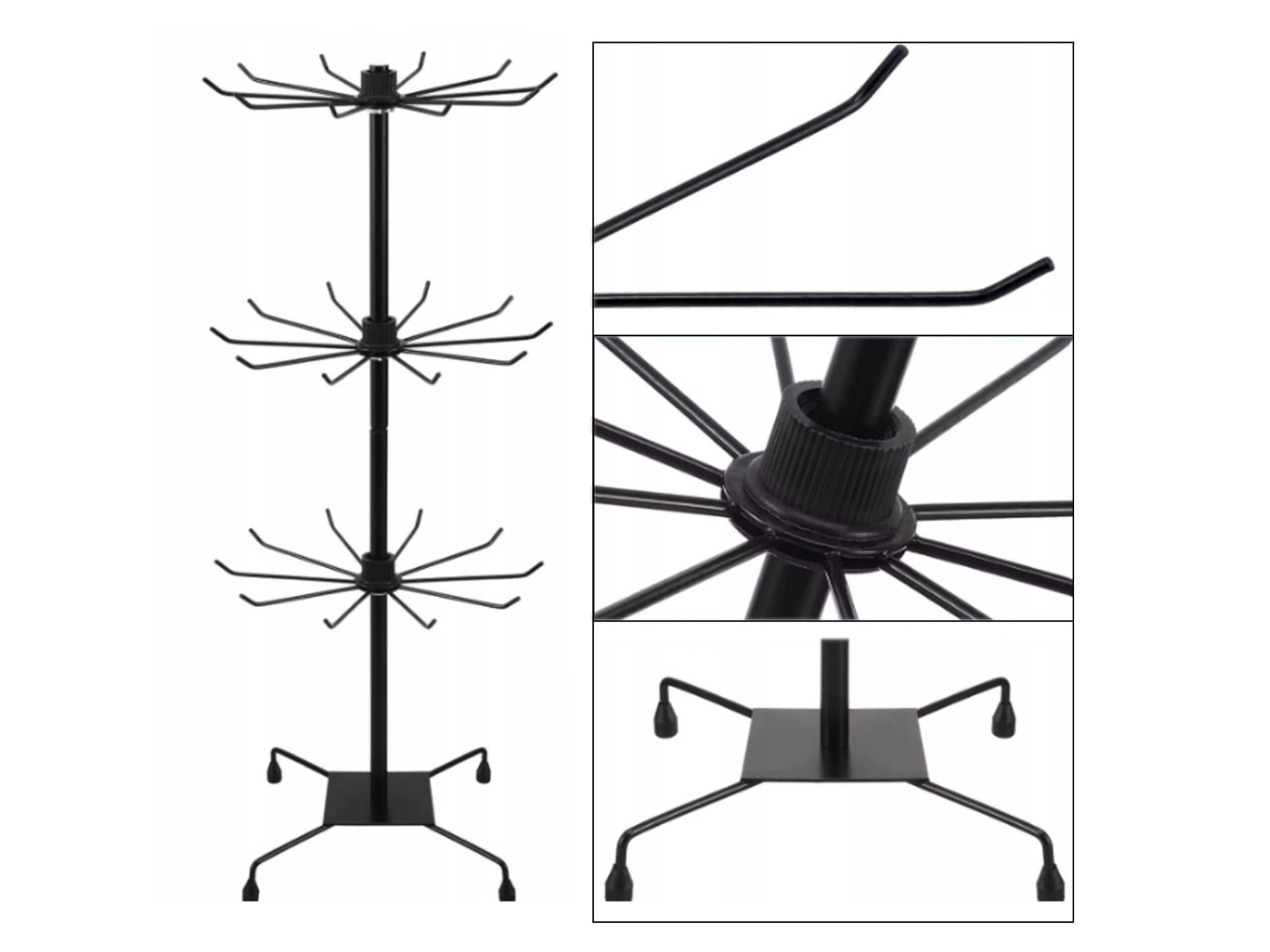 Stojak obrotowy czarny na breloczki, biżuterię, paski, czapki, smycze, ekspozytor sklepowy 3 poziomy